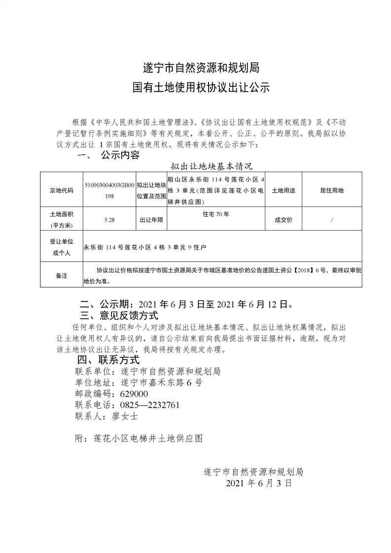 遂宁市自然资源和规划局国有土地使用权协议出让公示