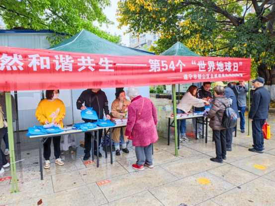 4月22日上午船山区自然资源和规划局在市城区裕丰园广场设点,开展以“珍爱地球,人与自然和谐共生”为主题的第54个“世界地球日”宣传活动。
