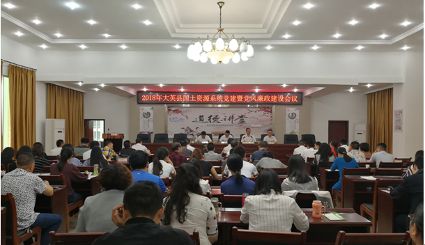 4月28日,2018年大英县国土资源系统党建暨党风廉政建设工作会议召开,会议主要内容是以习近平新时代中国特色社会主义思想为指导,深入学习贯彻党的十九大精神,学习贯彻各级纪委全会精神,总结2017年县国土资源系统党建和党风廉政建设工作,安排部署2018年工作任务,动员国土资源系统干部职工,统一思想、凝心聚力,以更加扎实的党建和党风廉政建设成效,为“城市创新、乡村振兴”战略作出新的更大的贡献。县国土资源局党组书记、局长唐肇廷做重要讲话,会议由县国土资源局党组成员、副局长吴建军主持,县国土资源系统全体干部职工参加会议。