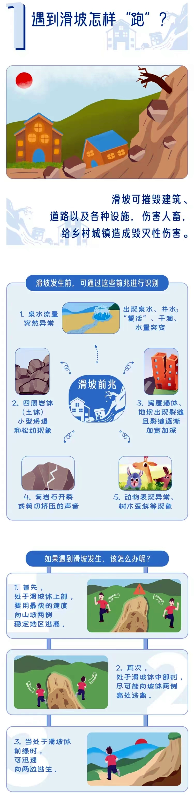山体滑坡、泥石流等地质灾害,给人民生命财产安全带来极大威胁,可以通过哪些“蛛丝马迹”发现地质灾害?遭遇地质灾害如何避险自救?让我们一起来学习。