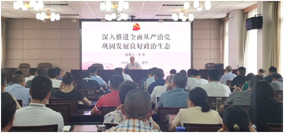 李冬围绕“深入推进全面从严治党,巩固良好发展政治生态”主题,结合近年来党风廉政建设方面违纪违法案例,从当前党风廉政建设形势、反腐败实践中需要把握的问题和党员干部需要注意的纪律问题三个方面,对如何清醒认识抓好抓实党风廉政建设的重要性和必要性,如何在工作中履行好“主体责任”“一岗双责”,找准党风廉政建设的具体抓手,深入推进全面从严治党和巩固发展良好的政治生态进行了详细讲授。