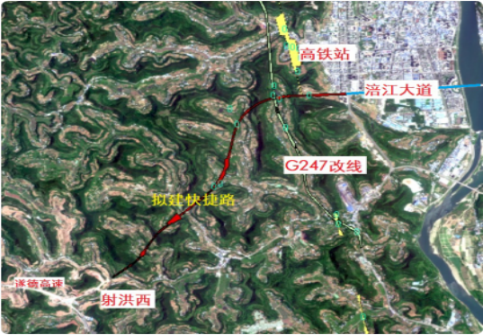 该快捷通道总长约6.9公里,宽度约22.5米,一级公路标准,设计时速80公里/小时。项目起于遂德高速射洪西,止于曾家湾,在客运总站与涪江大道连接。该公路的建设让成都、遂宁返射车辆入城更加便捷,并在小鲜家沟与拟改建的G247国道及高铁站实现快速转换,对完善我市路网结构、提高交通综合服务水平、降低交通转换通行时间、带动社会经济发展具有积极意义。