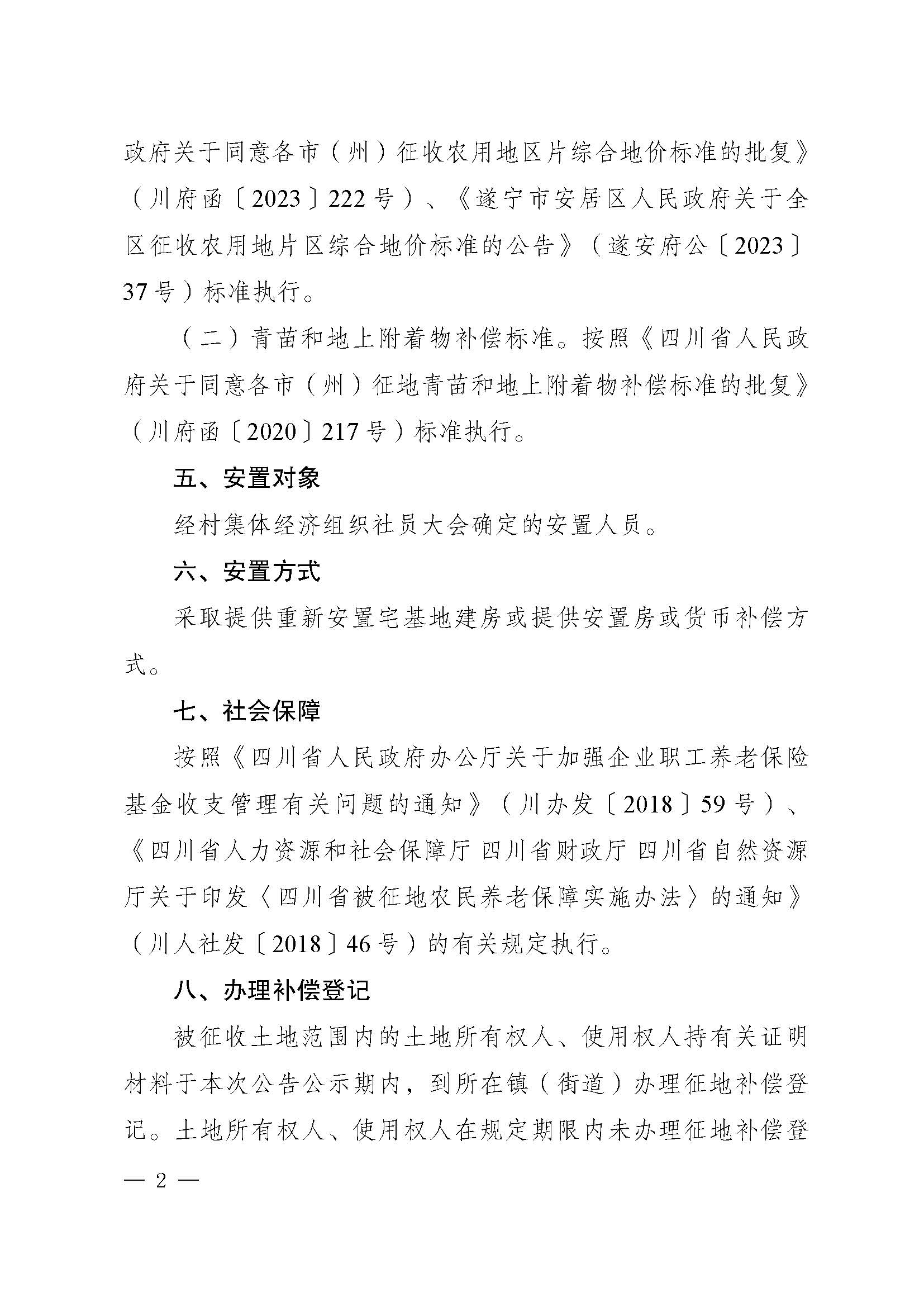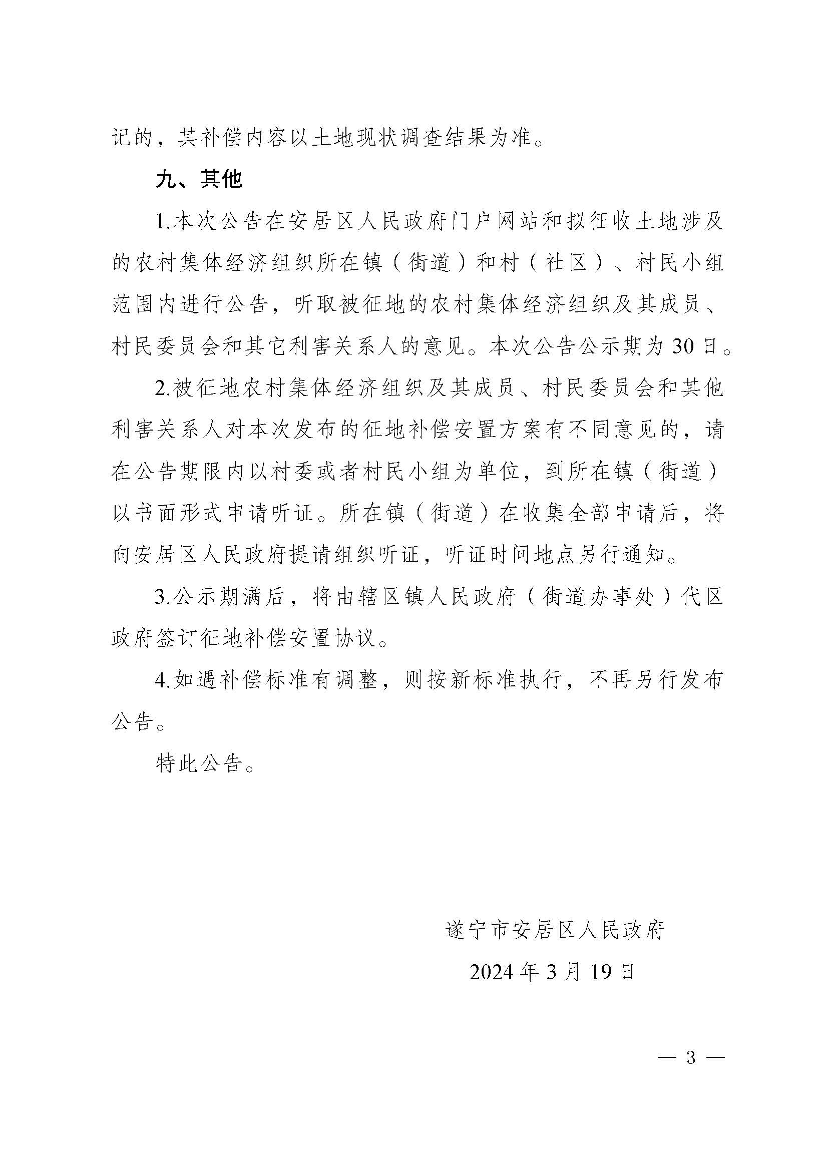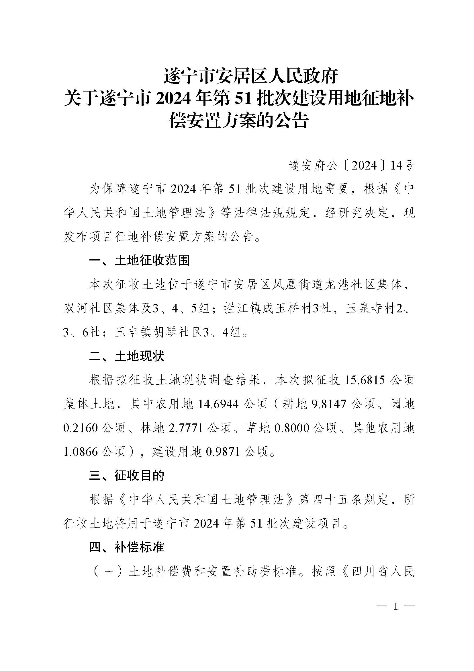 遂宁市安居区人民政府关于遂宁市2024年第51批次建设用地征地补偿安置方案的公告(遂安府公〔2024〕14号)