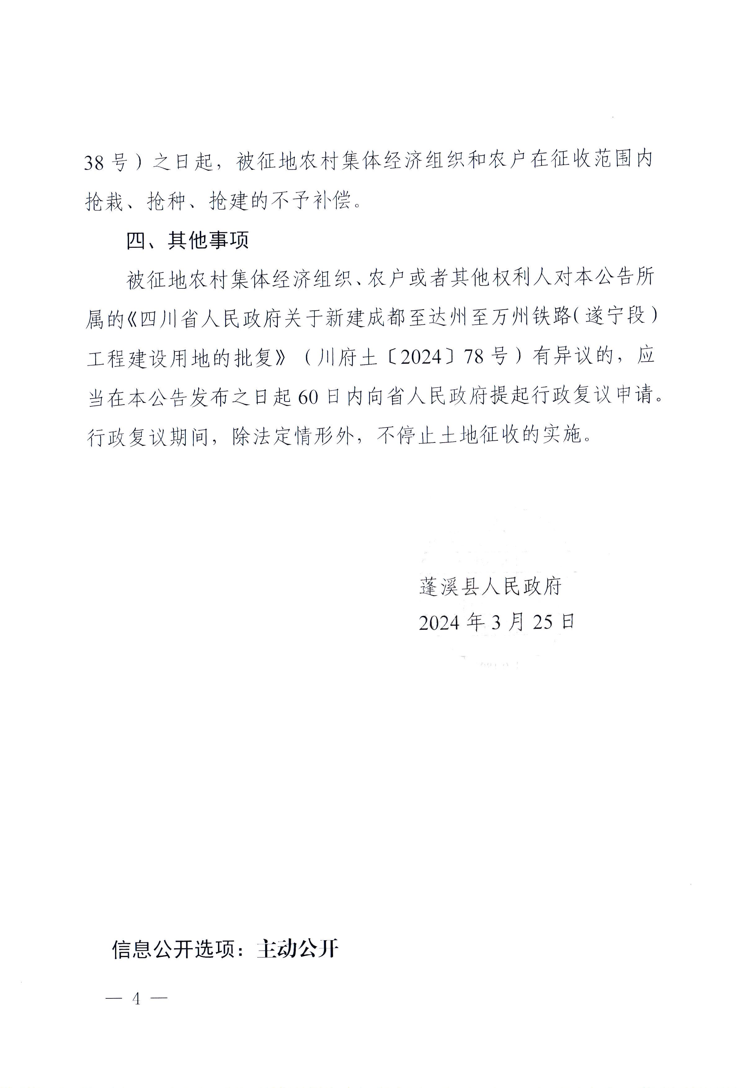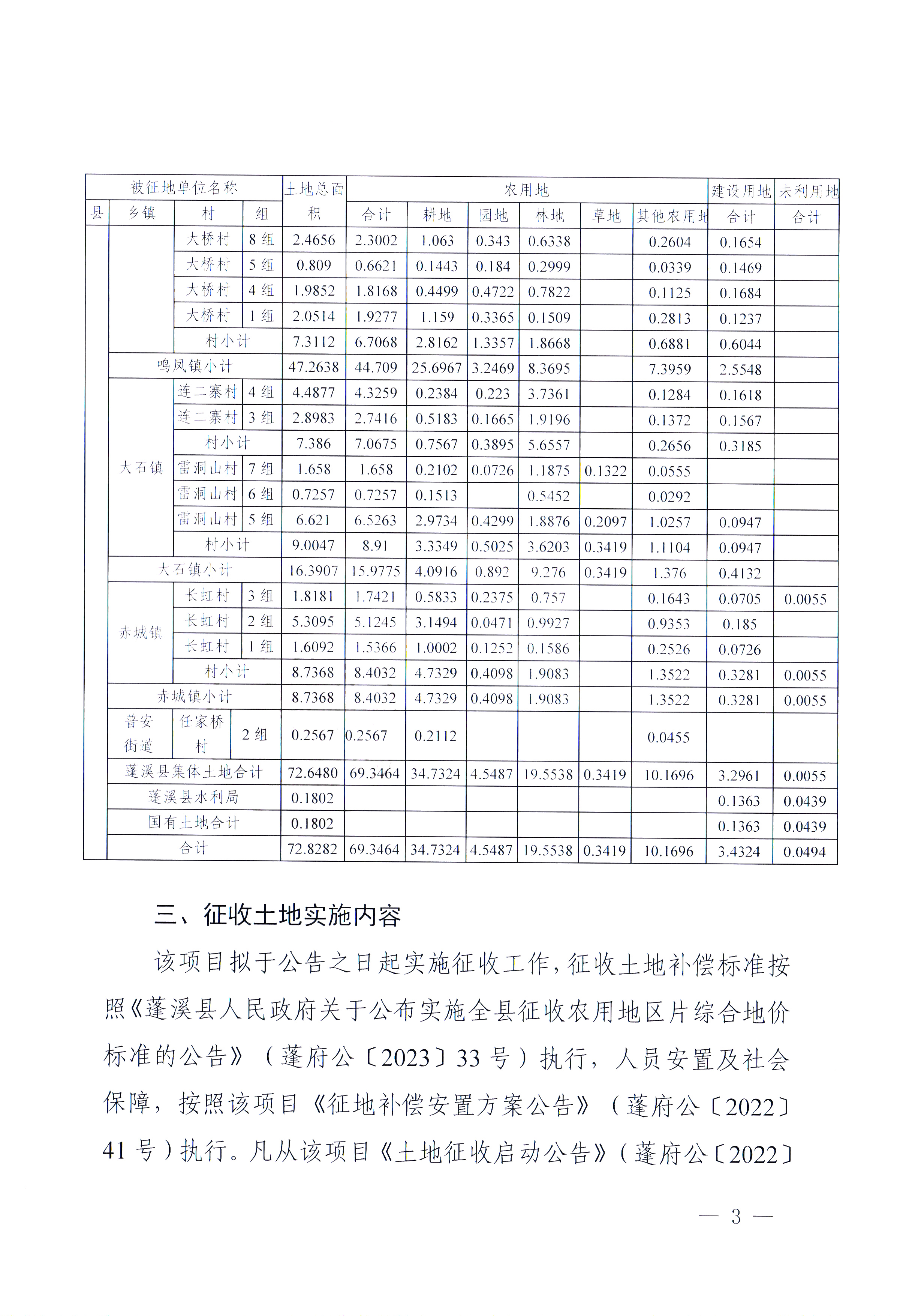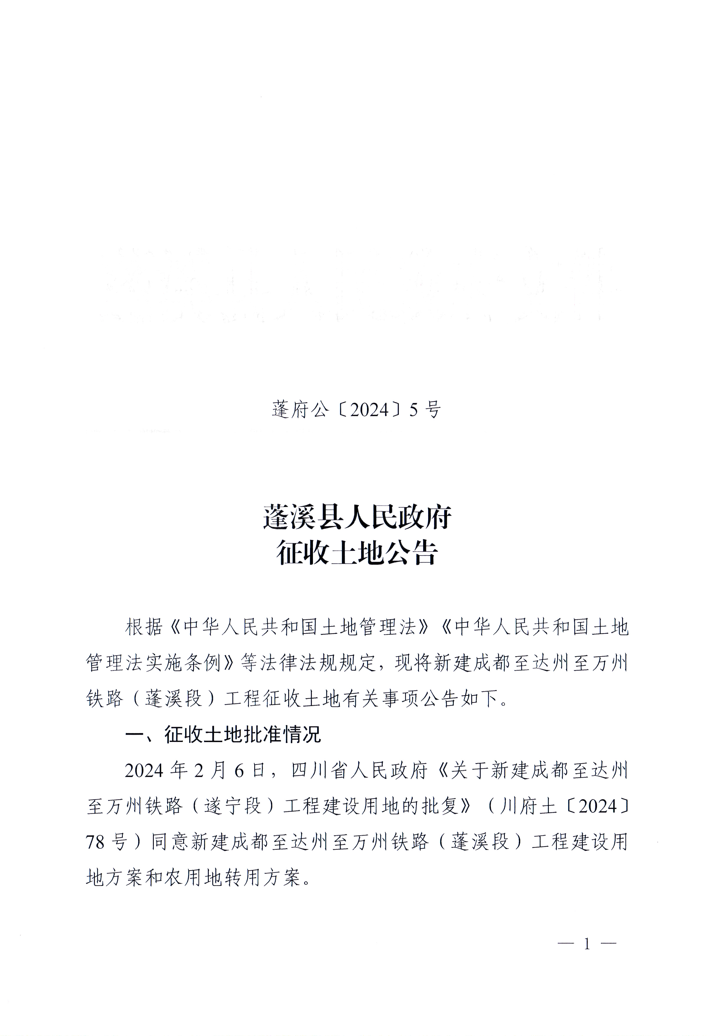 蓬溪县人民政府征收土地公告(蓬府公〔2024〕5号)
