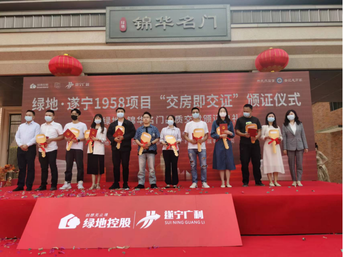 5月16日上午,经过遂宁市不动产登记中心和绿地集团遂宁置业有限公司政企配合,绿地·遂宁1958文创产业项目如期为购房业主在交房现场同步颁发不动产权证书。这是市城区第三个新建商品房项目实现“交房即交证”,当天为购房业主颁发不动产权证书64本,后期还将颁发66本。