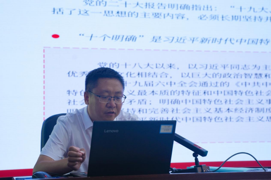 党组书记、局长宋小宁以《全面学习领会习近平新时代中国特色社会主义思想》作党课辅导,全面讲述了习近平新时代中国特色社会主义思想的主要内容、精髓要义,同时结合我市自然资源规划工作,讲感悟、讲体会、讲收获,并深入分析工作推进中所面临的挑战,要求全体党员干部要深入学习,进一步提高政治站位,把学习贯彻习近平新时代中国特色社会主义思想作为重大政治任务和政治责任,自觉从习近平新时代中国特色社会主义思想中汲取奋发进取的智慧和力量,熟练掌握其中蕴含的思想方法和工作方法,努力提高在自然资源规划领域攻坚克难、化解矛盾、驾驭复杂局面的能力,为加快建设更高位势全国百强县、西部现代化工业强市、成渝中部共同富裕先行区、“锂电之都”核心区和遂宁市域副中心贡献自然资源力量。