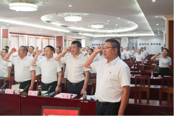面对鲜艳的党旗,在党组书记、局长宋小宁领誓下,参会全体党员庄严宣誓,重温入党誓词,坚毅的目光、洪亮淳厚的声音、铿锵有力的誓词,让在场的每一位党员心潮澎湃,一字一句,神圣而又坚定,表达着新时代共产党员的责任与担当,许下了对党忠诚、永不叛党的坚定承诺。