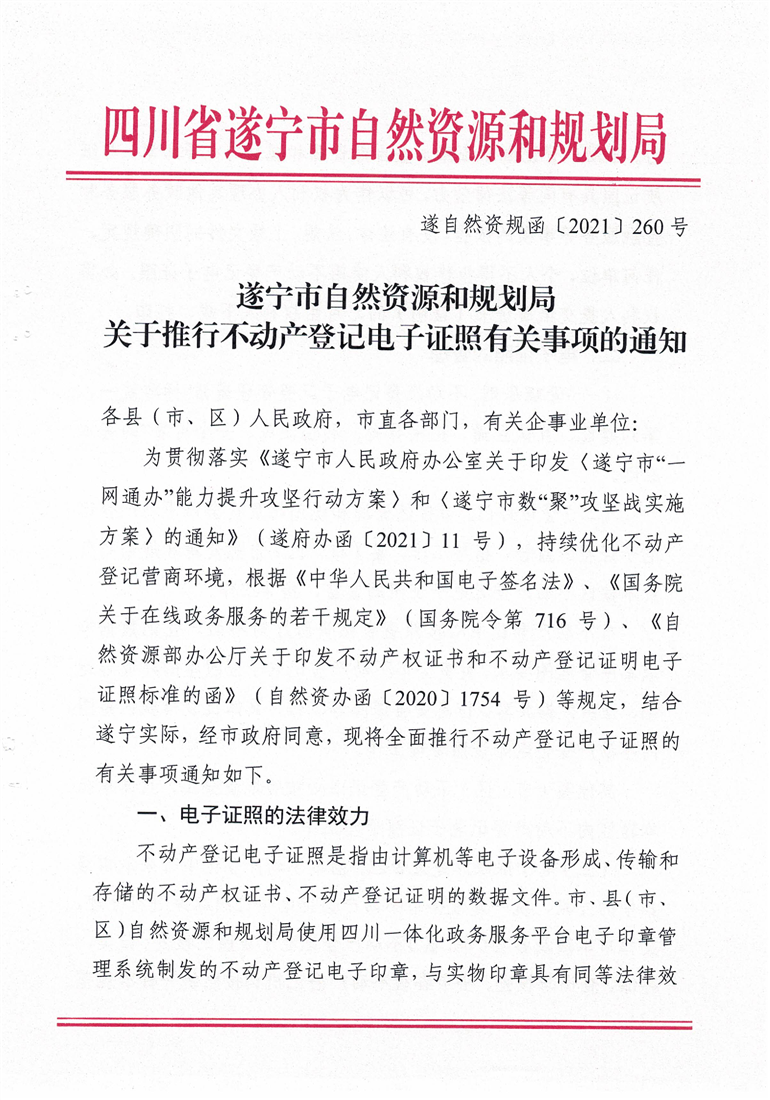 关于推行不动产登记电子证照有关事项的通知