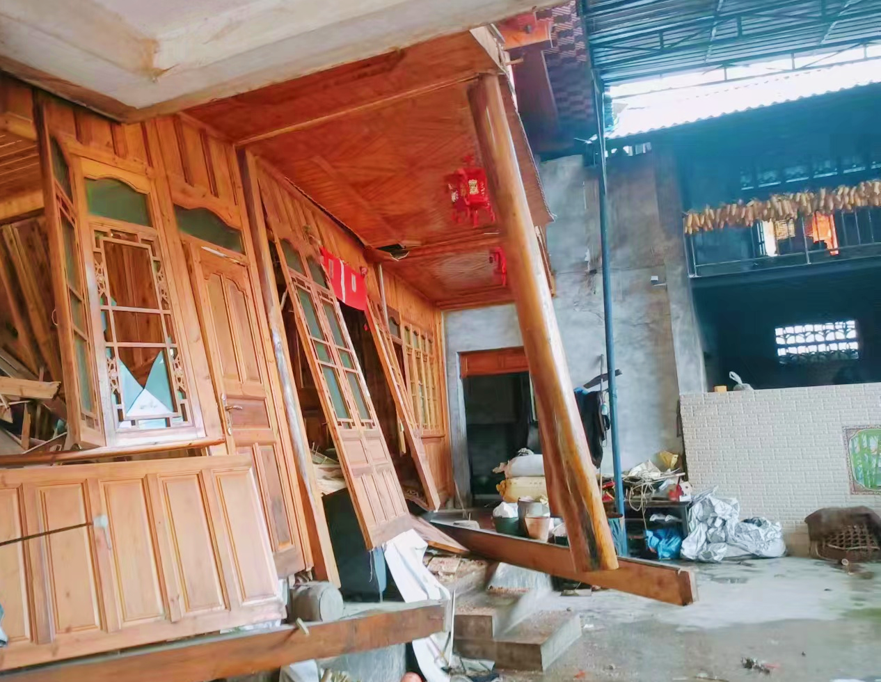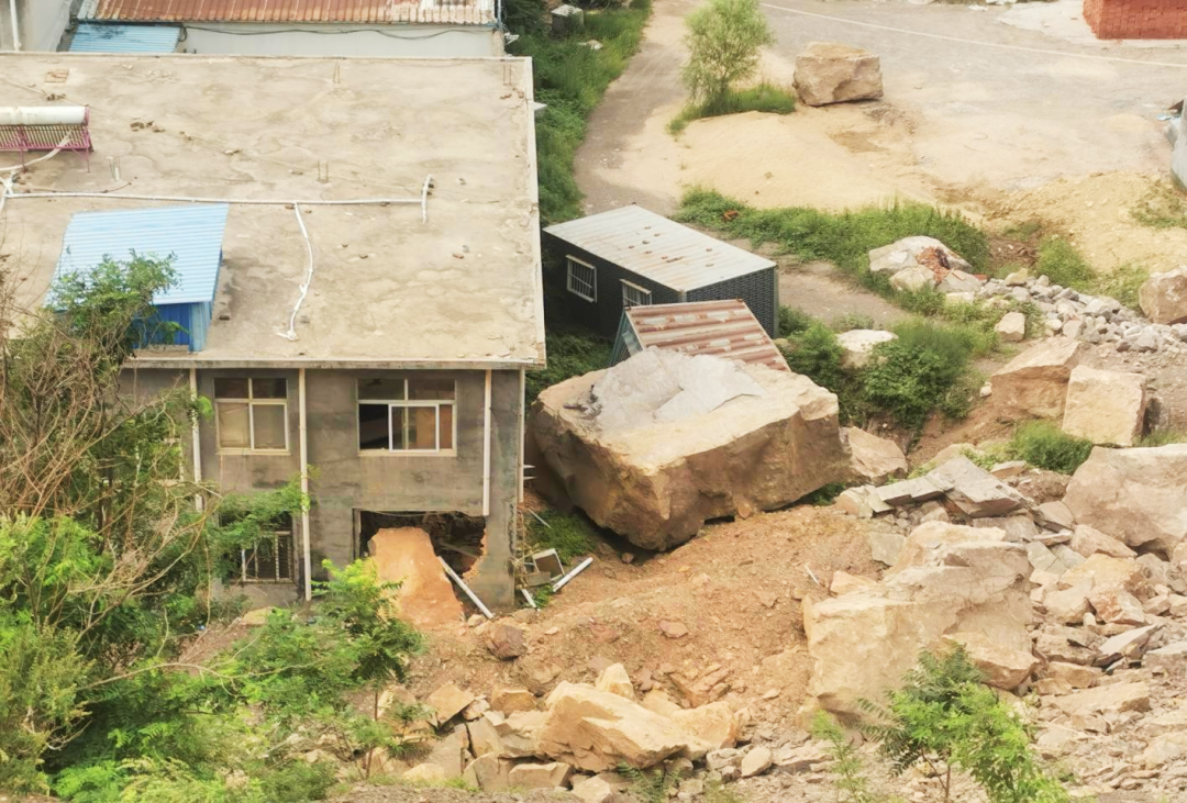 被滚落的块石损毁的民屋