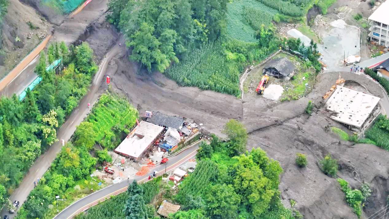 因泥石流受损的房屋和田地