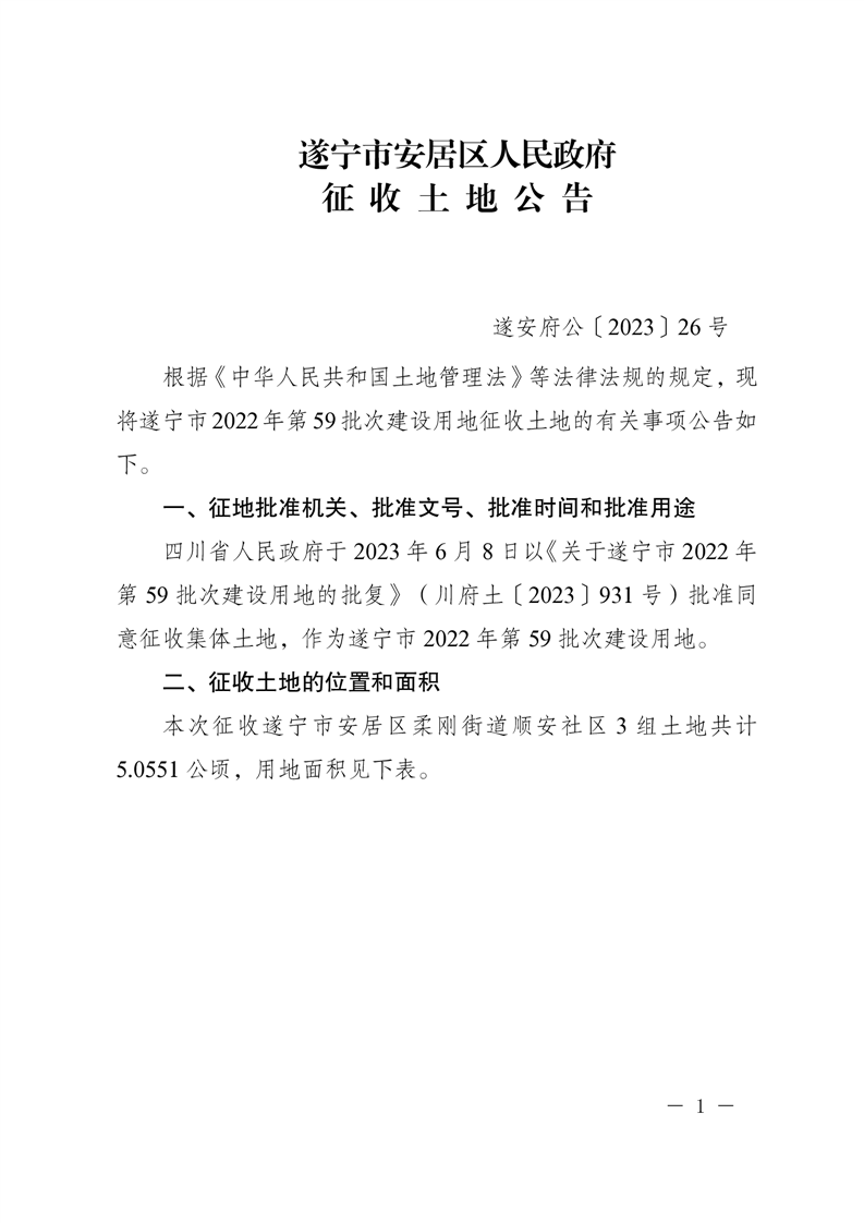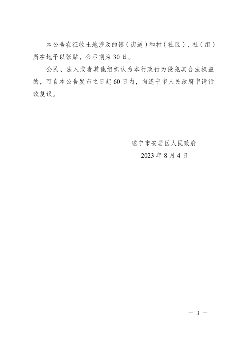 遂宁市安居区人民政府征收土地公告(遂安府公〔2023〕26号)