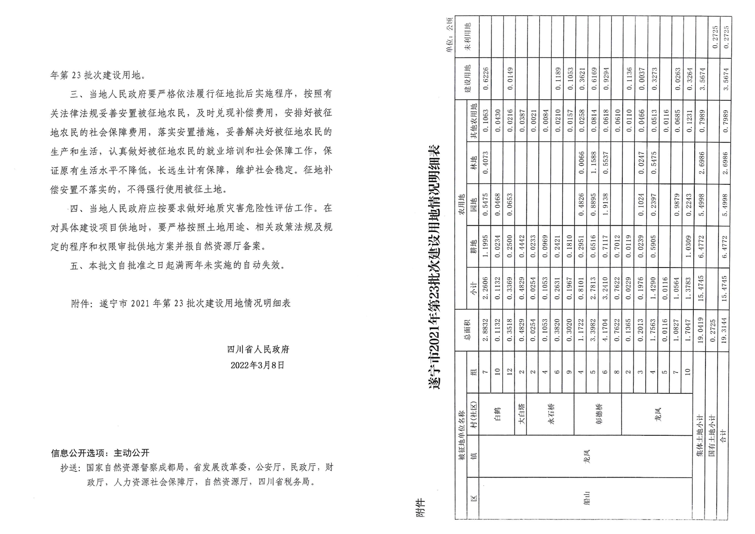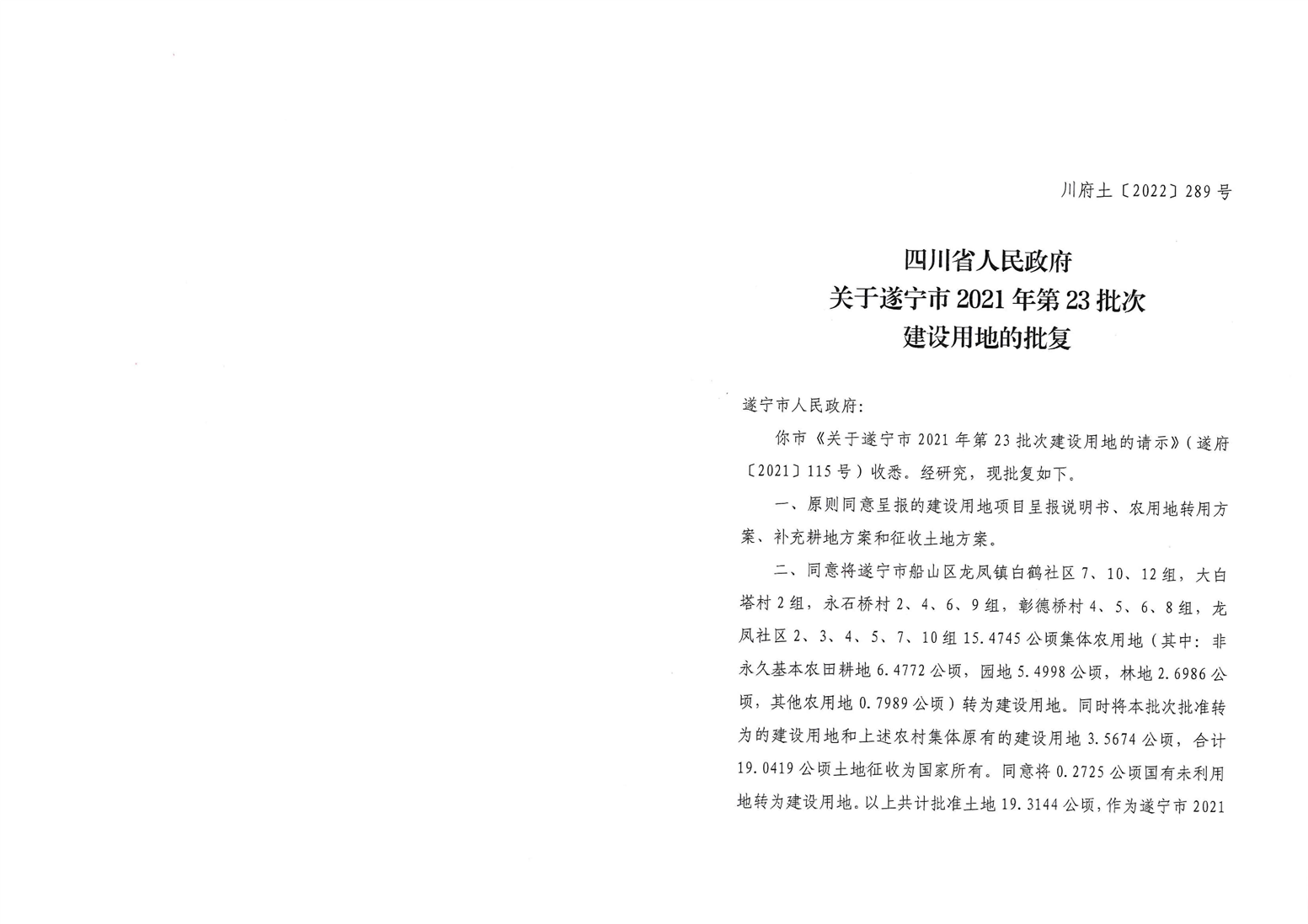 四川省人民政府关于遂宁市2021年第23批次建设用地的批复