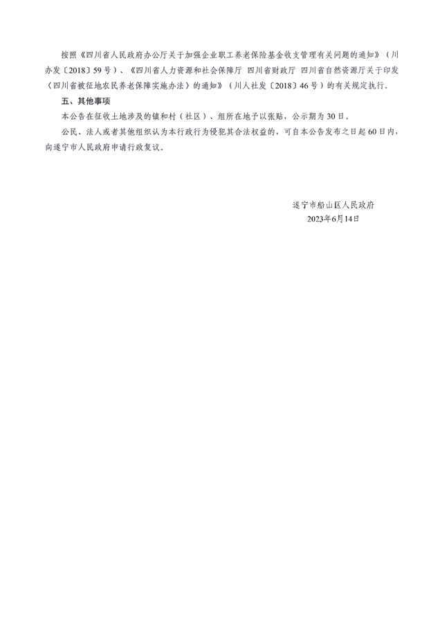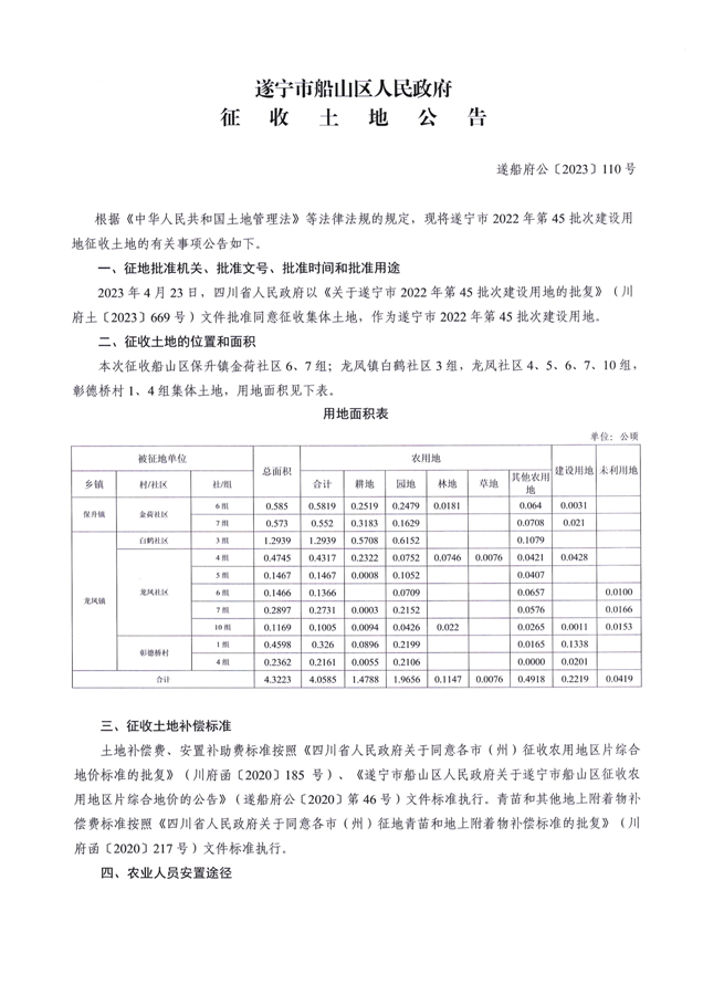 遂宁市船山区人民政府征收土地公告(遂船府公〔2023〕110 号)