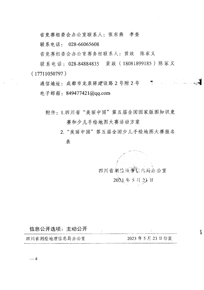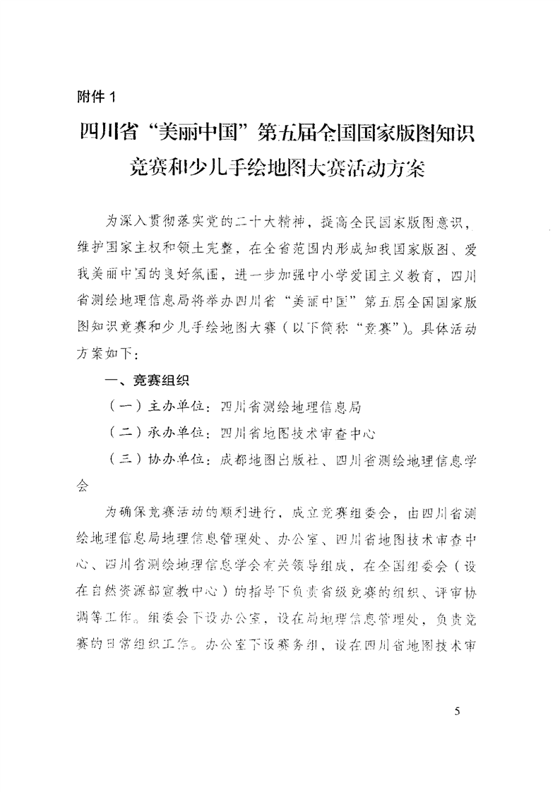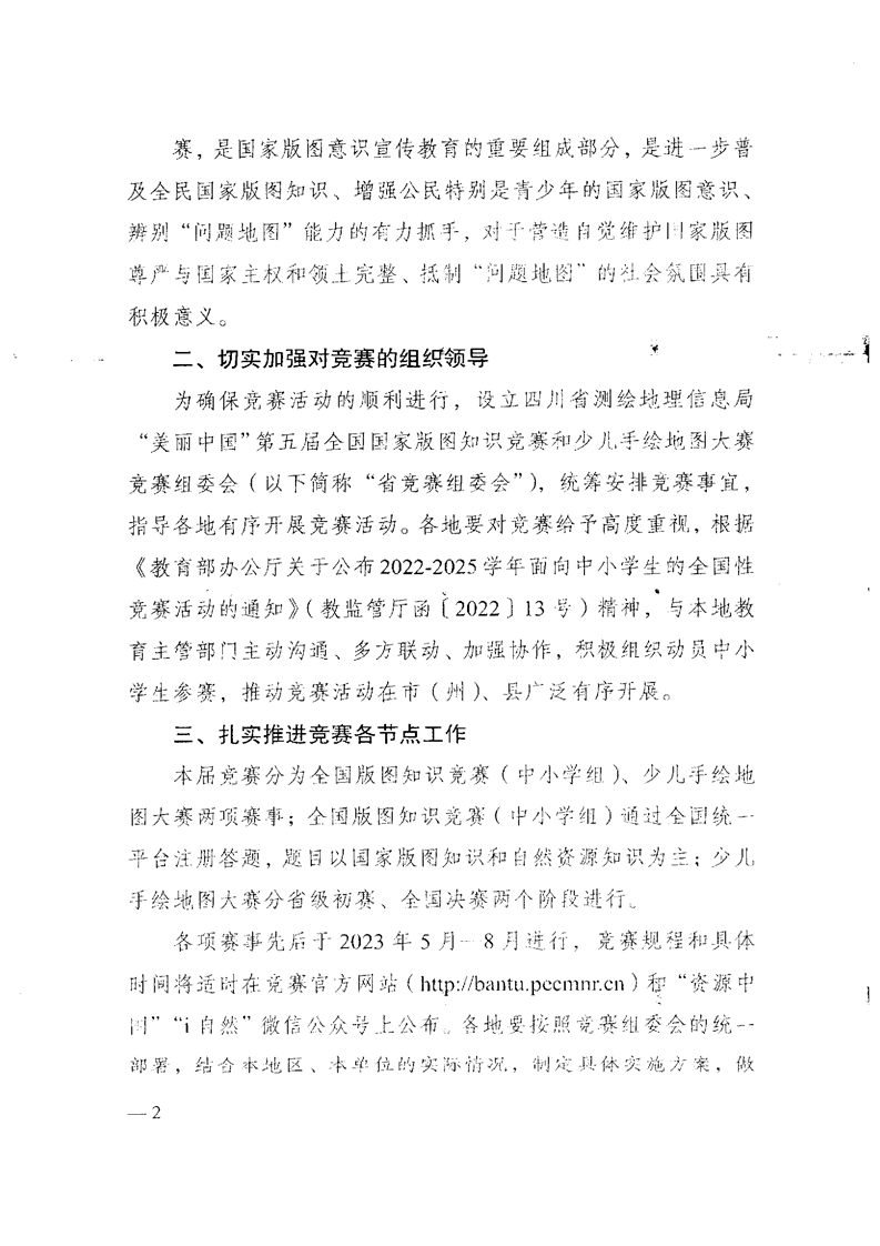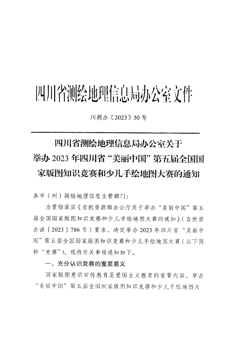 四川省测绘地理信息局办公室关于举办2023年四川省“美丽中国”第五届全国国家版图知识竞赛和少儿手绘地图大赛的通知