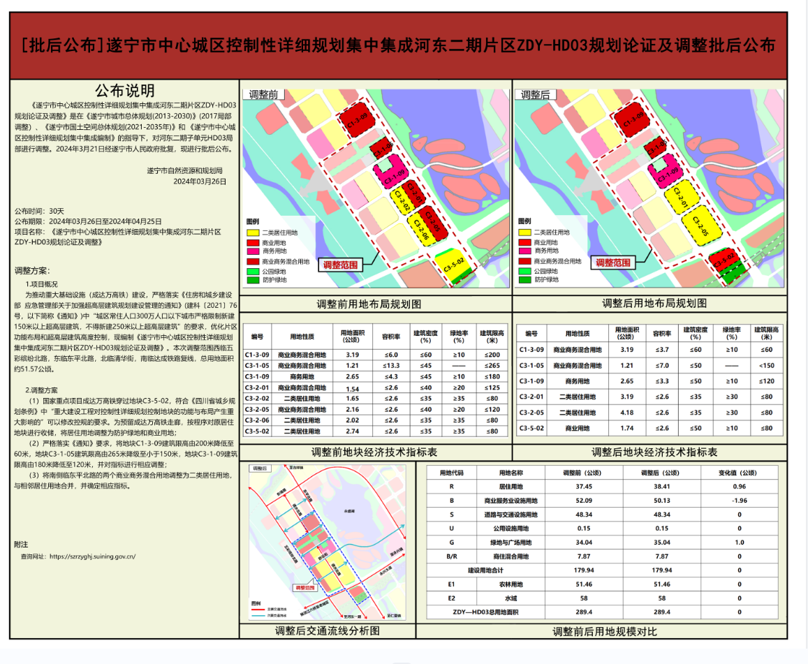 [批后公布]遂宁市中心城区控制性详细规划集中集成河东二期片区ZDY-HD03规划论证及调整批后公布