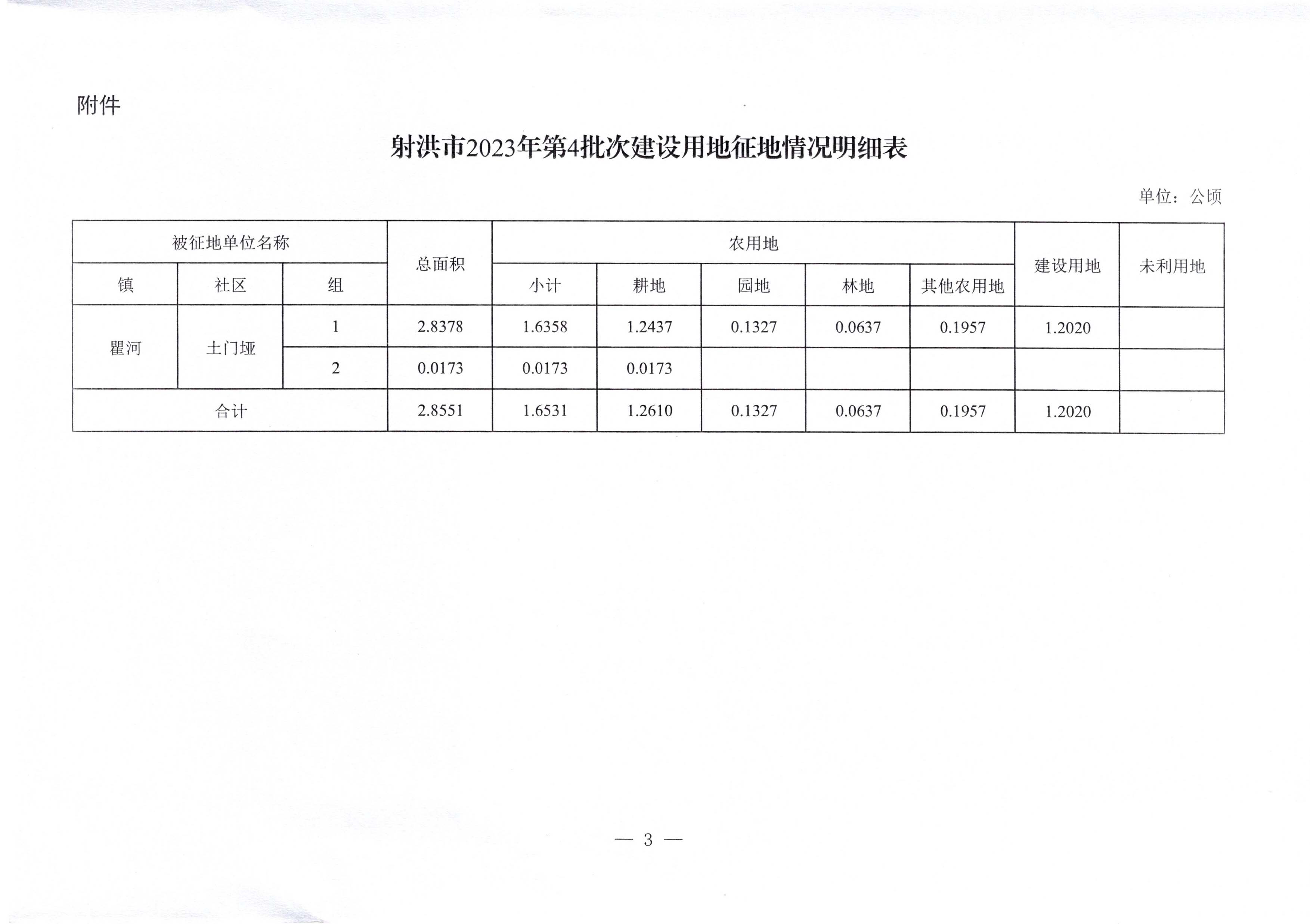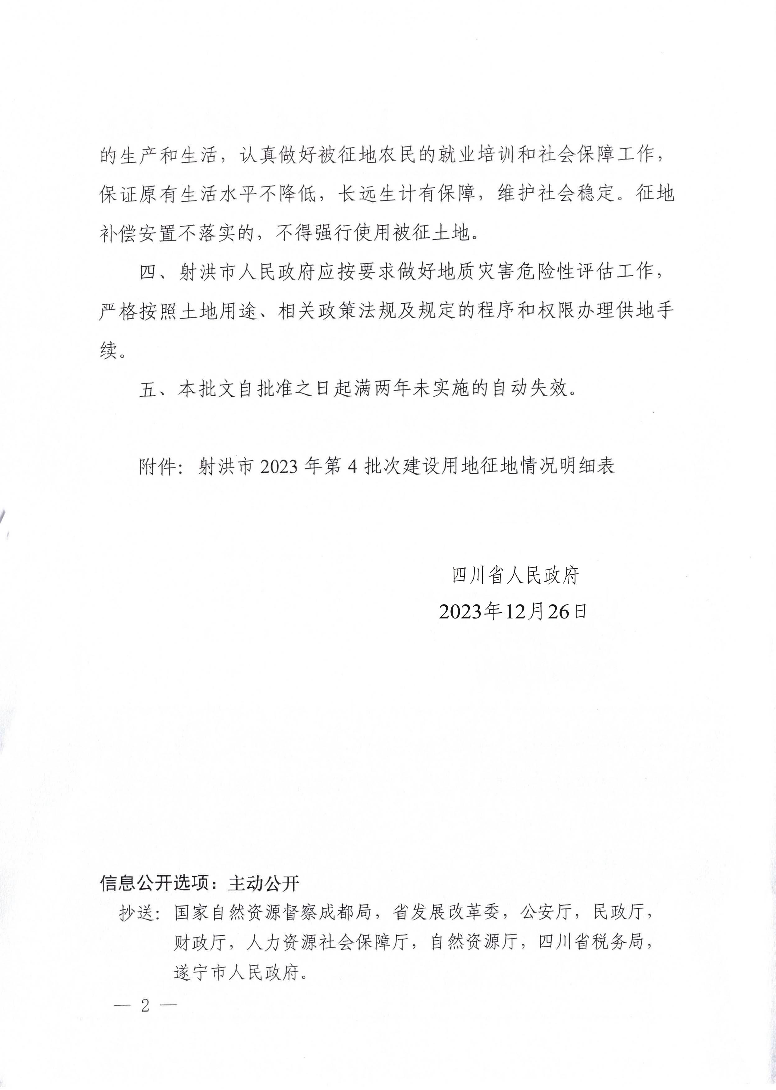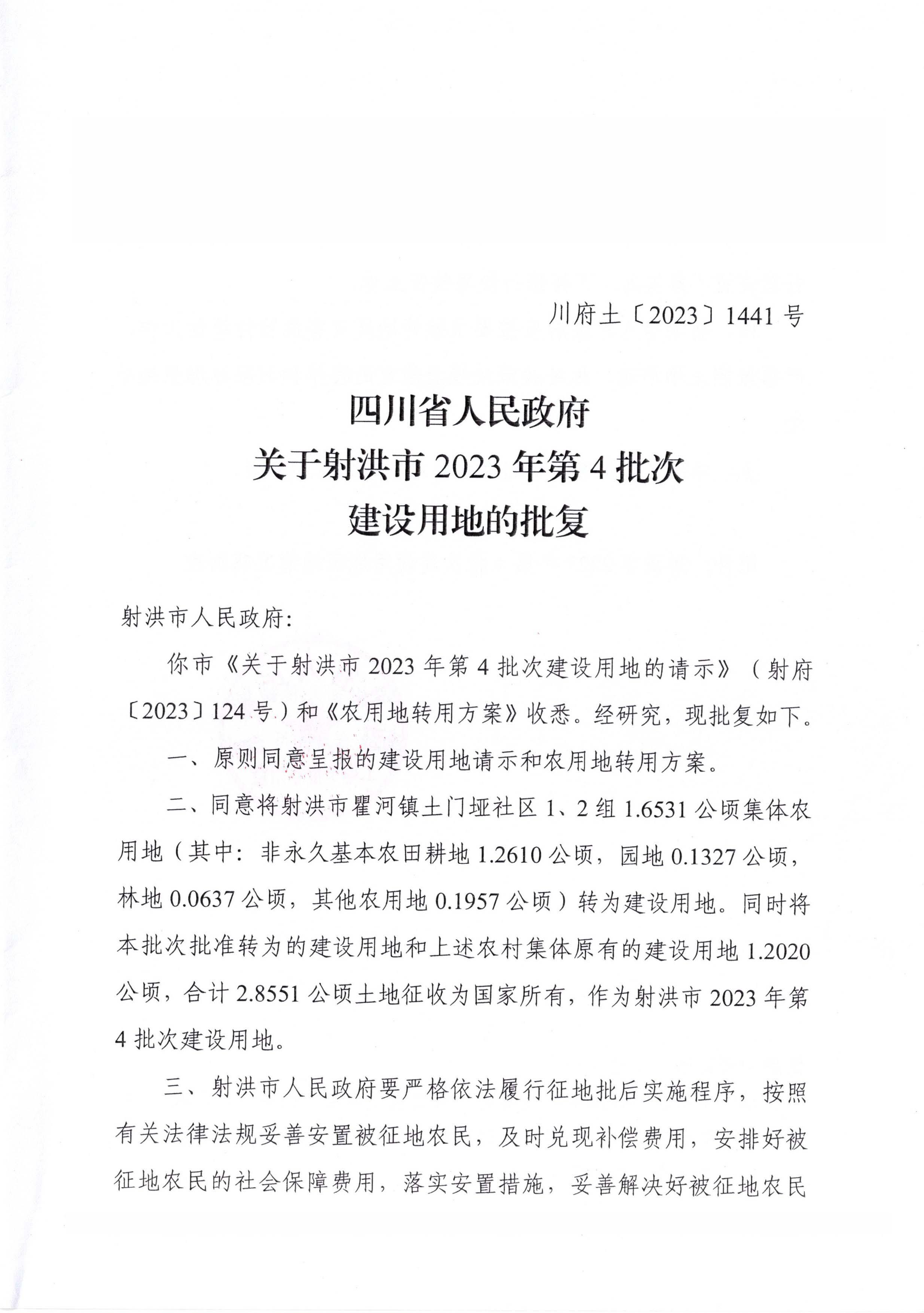 四川省人民政府关于射洪市2023年第4批次建设用地的批复(川府土〔2023〕1441号)