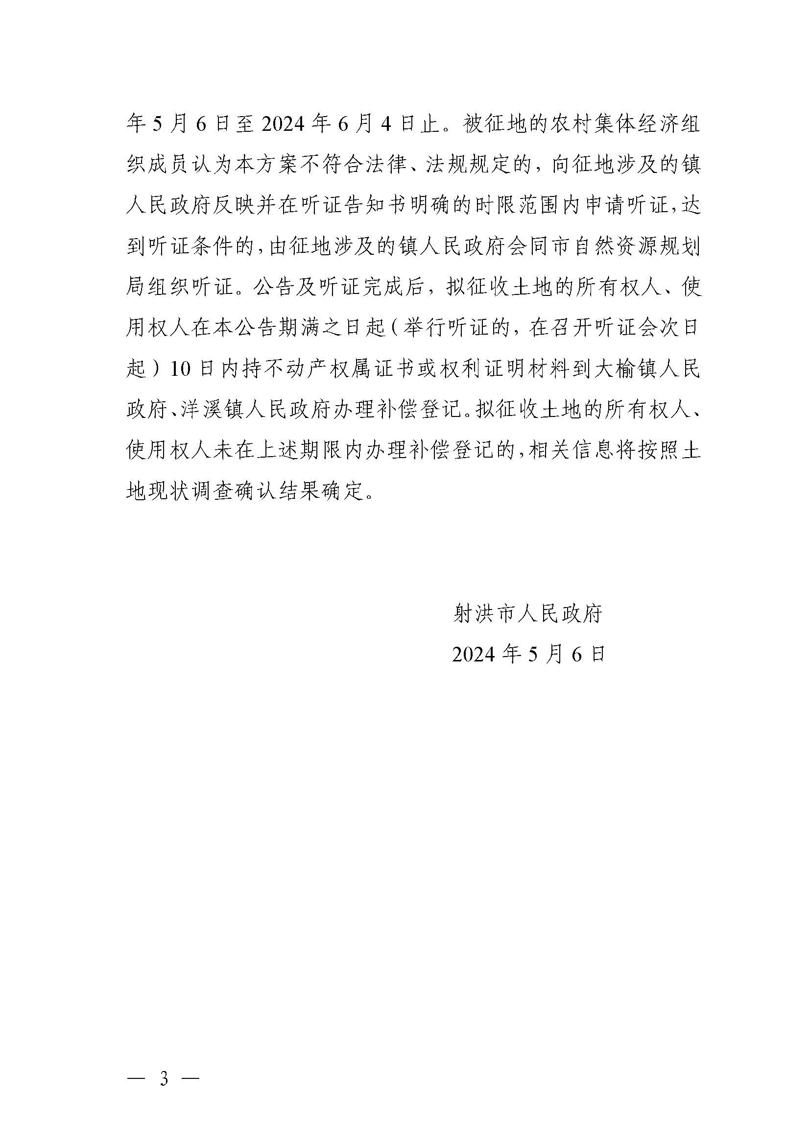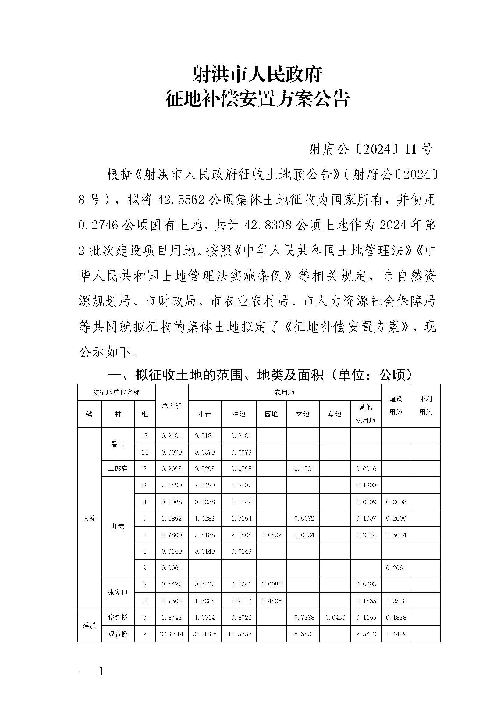 射洪市人民政府征地补偿安置方案公告(射府公〔2024〕11号)