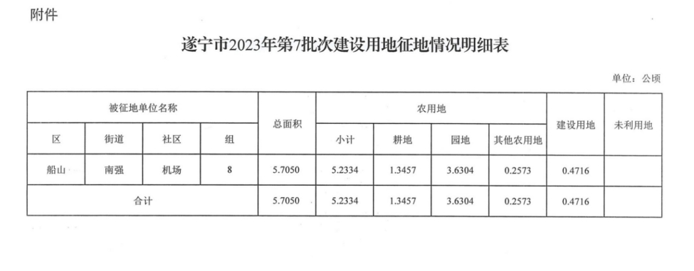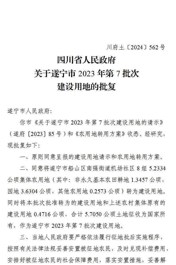 遂宁市船山区人民政府征收土地公告(遂船府公〔2024〕37号)