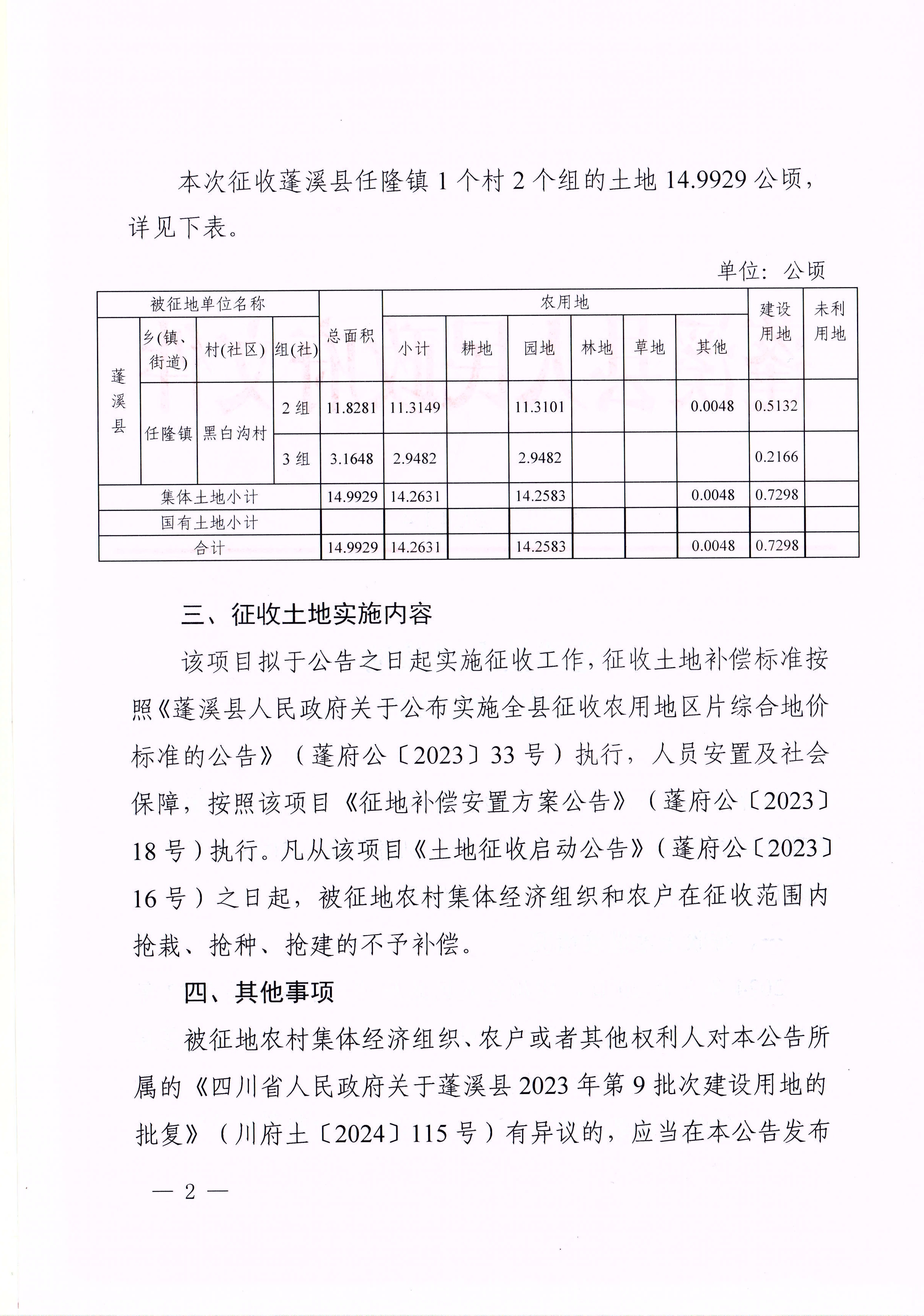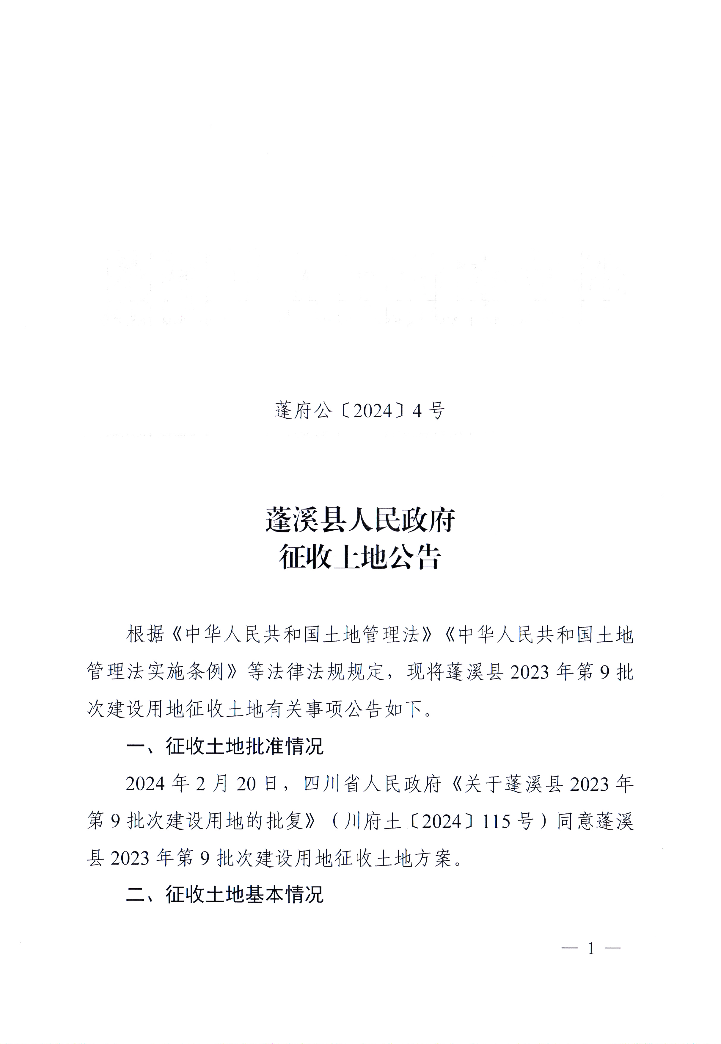 蓬溪县人民政府征收土地公告(蓬府公〔2024〕4号)