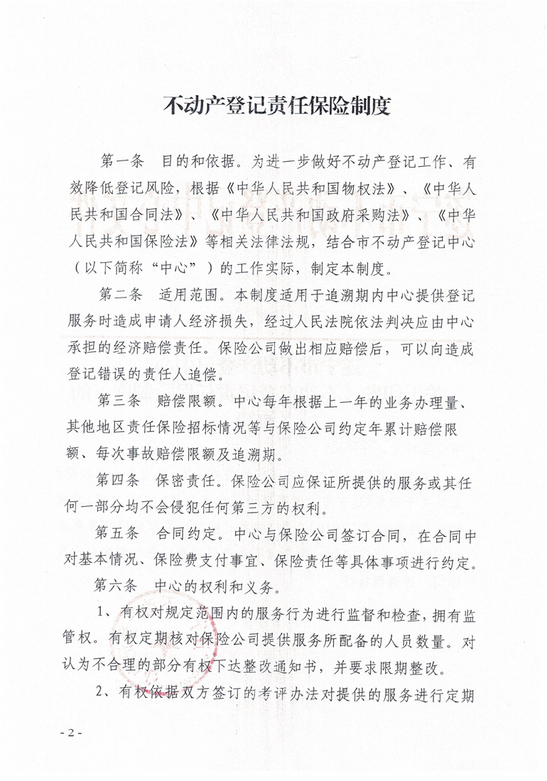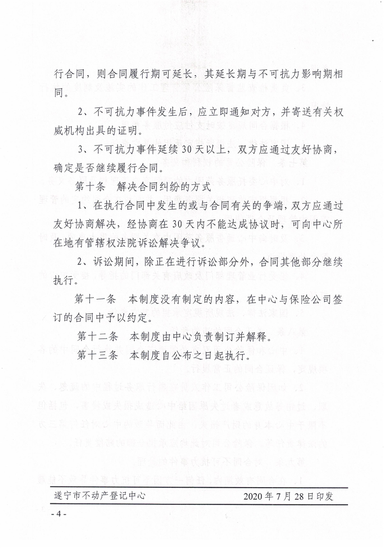 为深入贯彻落实《中共遂宁市委办公室 遂宁市人民政府办公室关于印发〈遂宁市“营商环境优化提升年”工作方案〉的通知》(遂委办函〔2020〕4号)文件,按照市委市政府部署要求,结合我中心工作实际,现将《不动产登记责任保险制度》印发你们,请遵照执行。