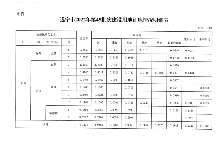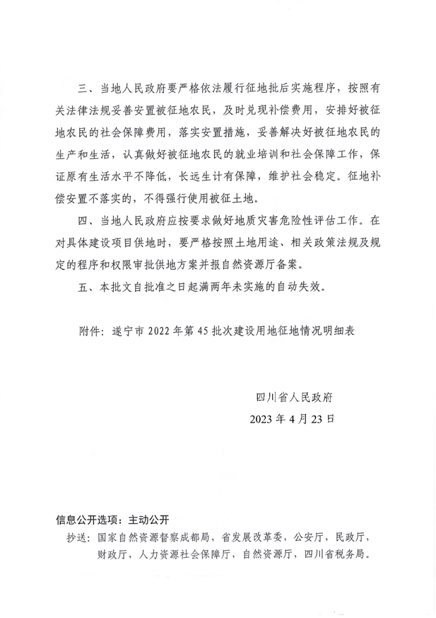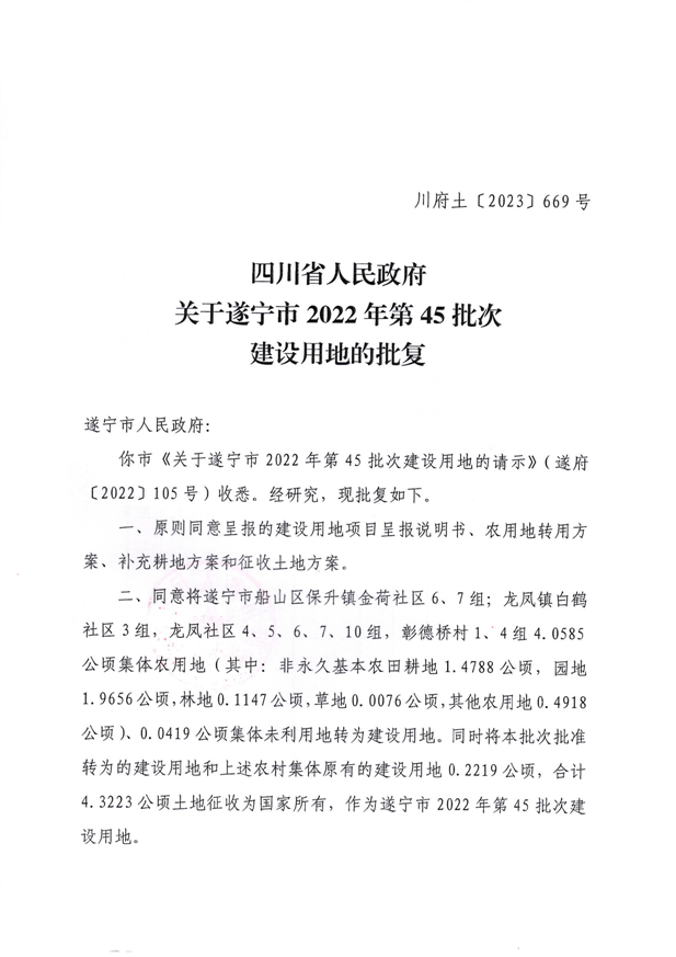 四川省人民政府关于遂宁市2022年第45批次建设用地的批复(川府土〔2023〕669号 )