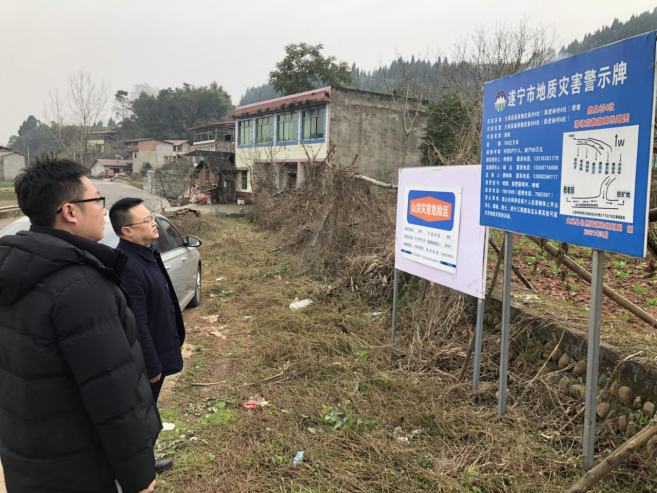 2022年1月19日,局党委委员、副局长张志带队,国土空间生态修复科、地质地矿科相关人员参加,前往大英县火井建材有限公司和蓬莱镇虎泉村4社滑坡地质灾害隐患点进行督导检查。