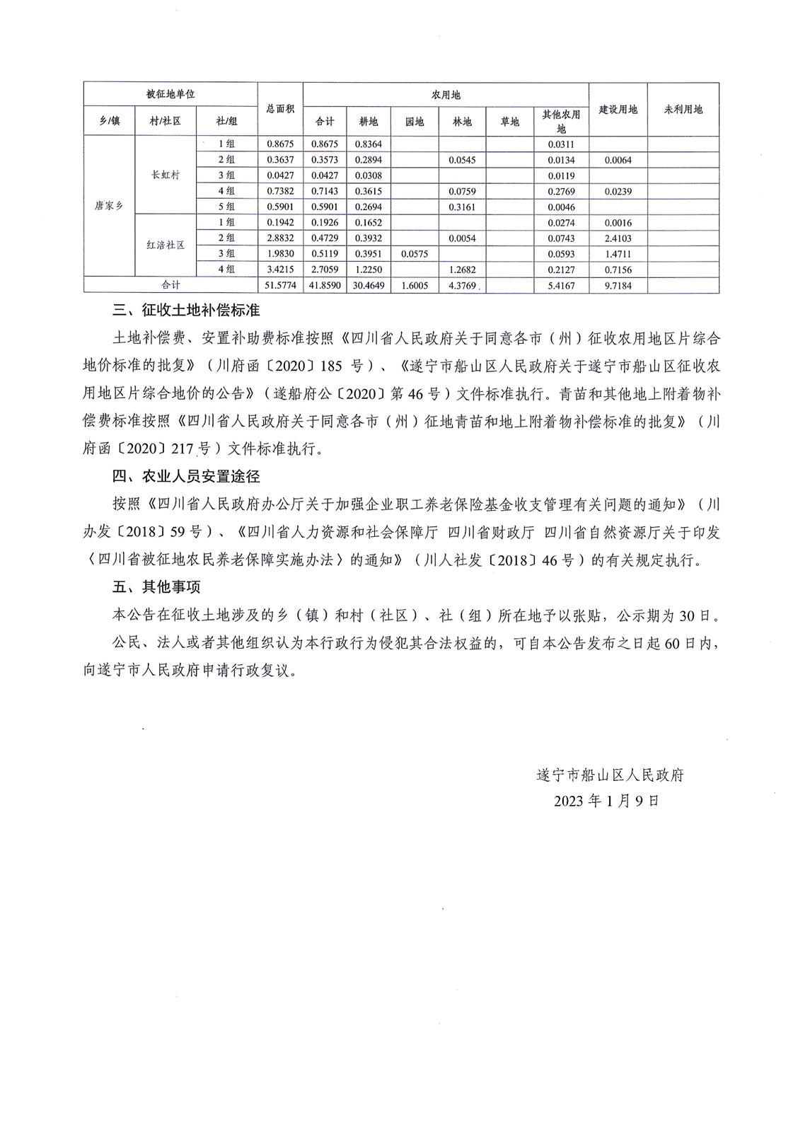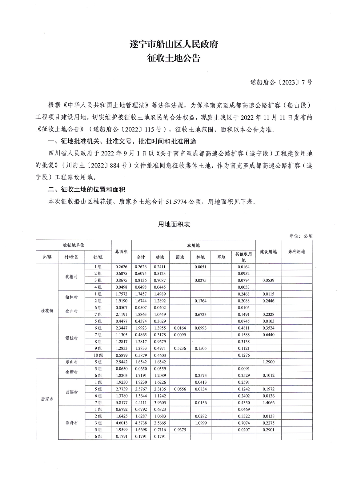 遂宁市船山区人民政府征收土地公告(遂船府公〔2023〕7号)