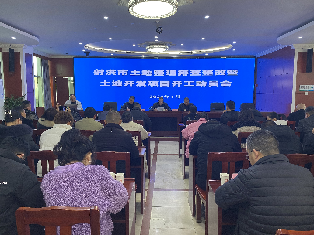 为提高耕地质量,改善农村生产环境,1月9日,射洪市自然资源和规划局组织召开土地整理排查整改暨土地开发项目开工动员会。涉及的沱牌镇、广兴镇、太乙镇、金家镇、洋溪镇、潼射镇、武安镇、瞿河镇等8个镇和村委会相关负责人,市农投公司、施工单位、监理单位、设计单位负责人出席会议。