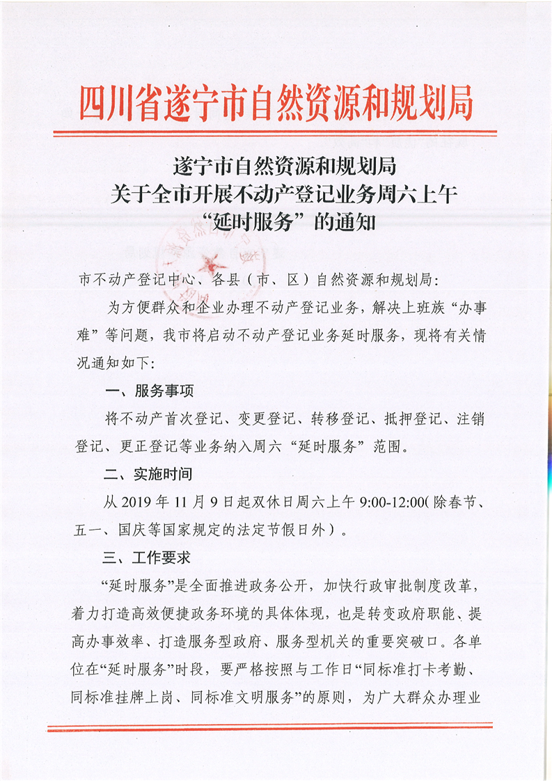关于全市开展不动产登记业务周六上午“延时服务”的通知
