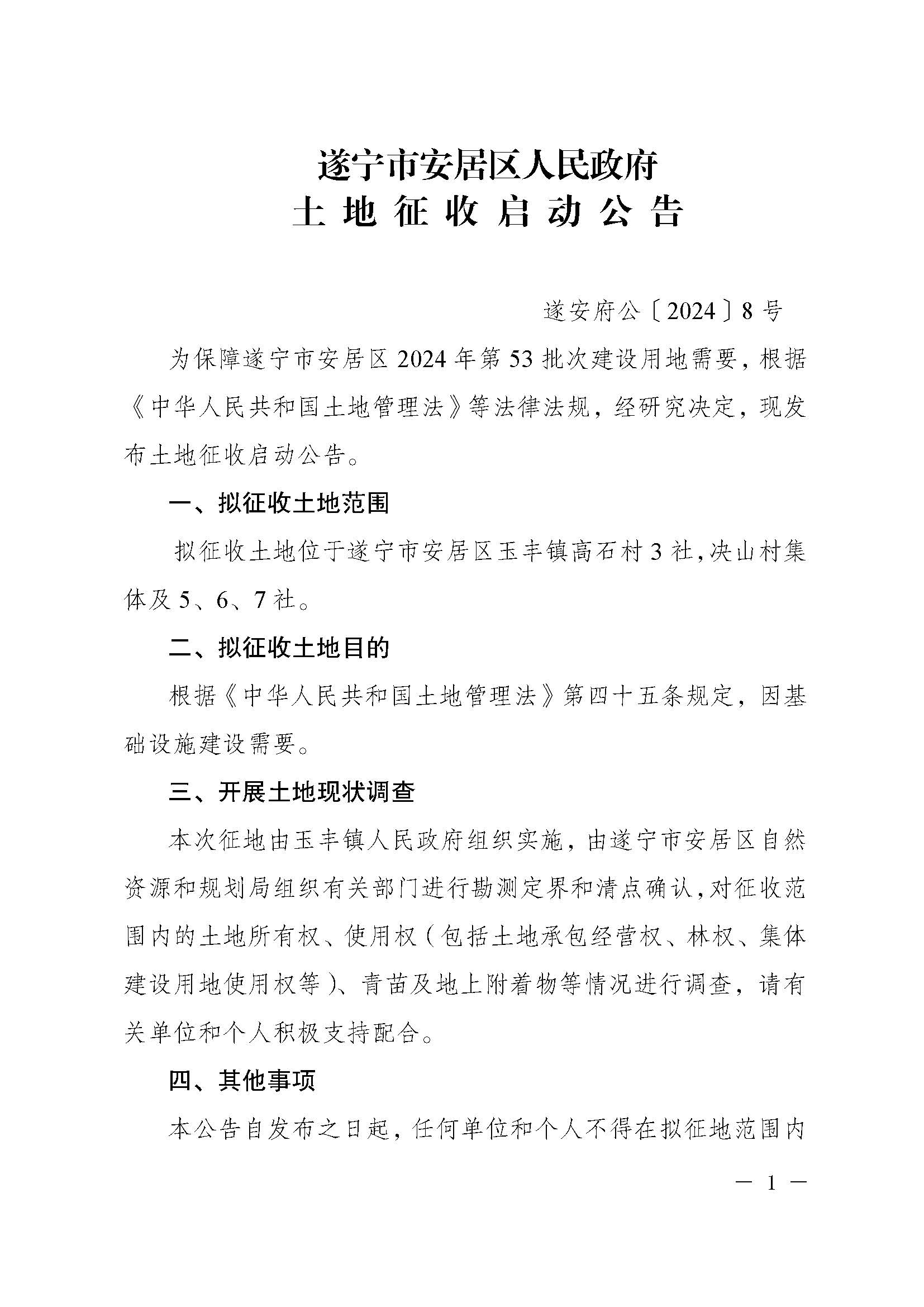遂宁市安居区人民政府土地征收启动公告 (遂安府公〔2024〕8号)
