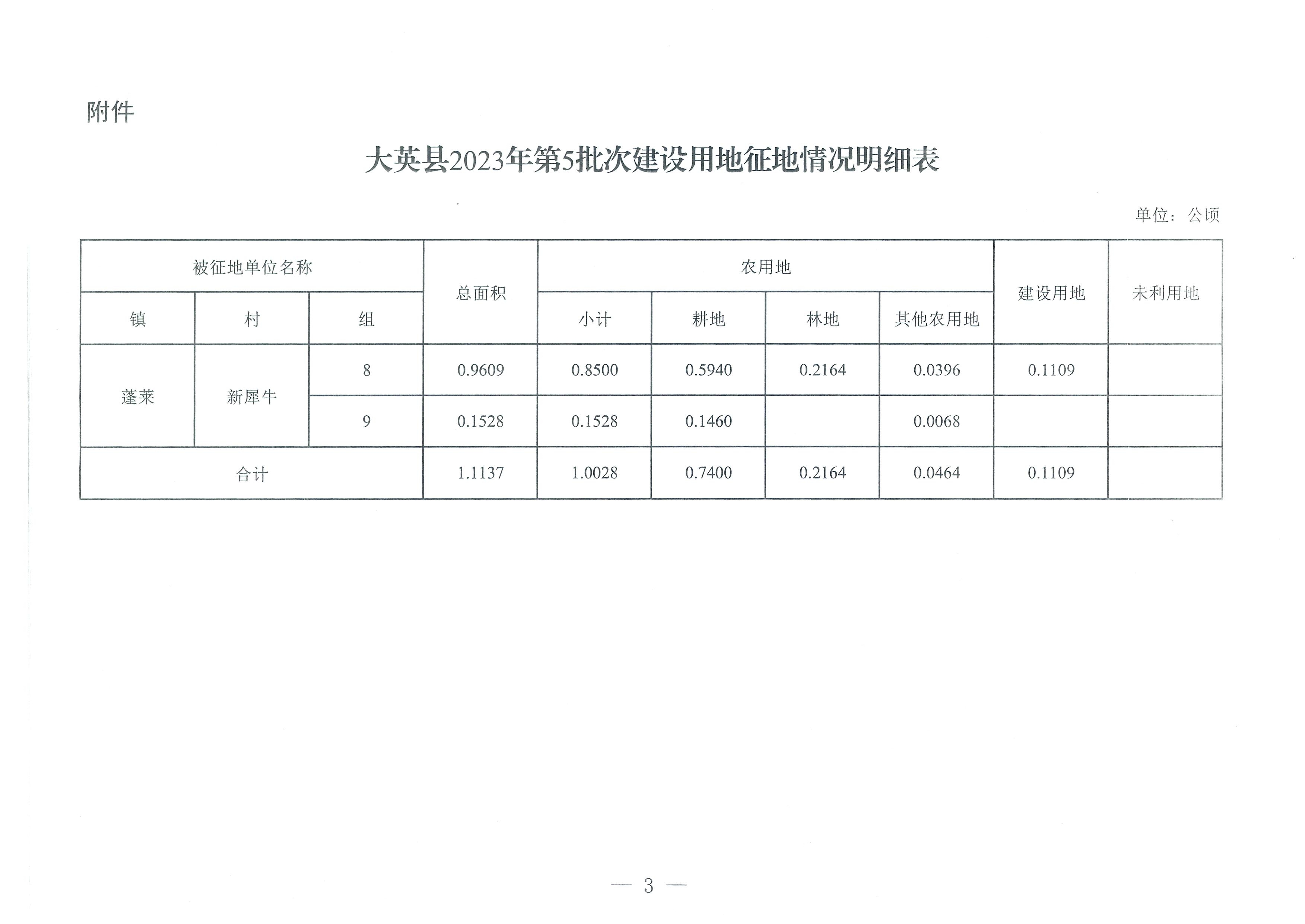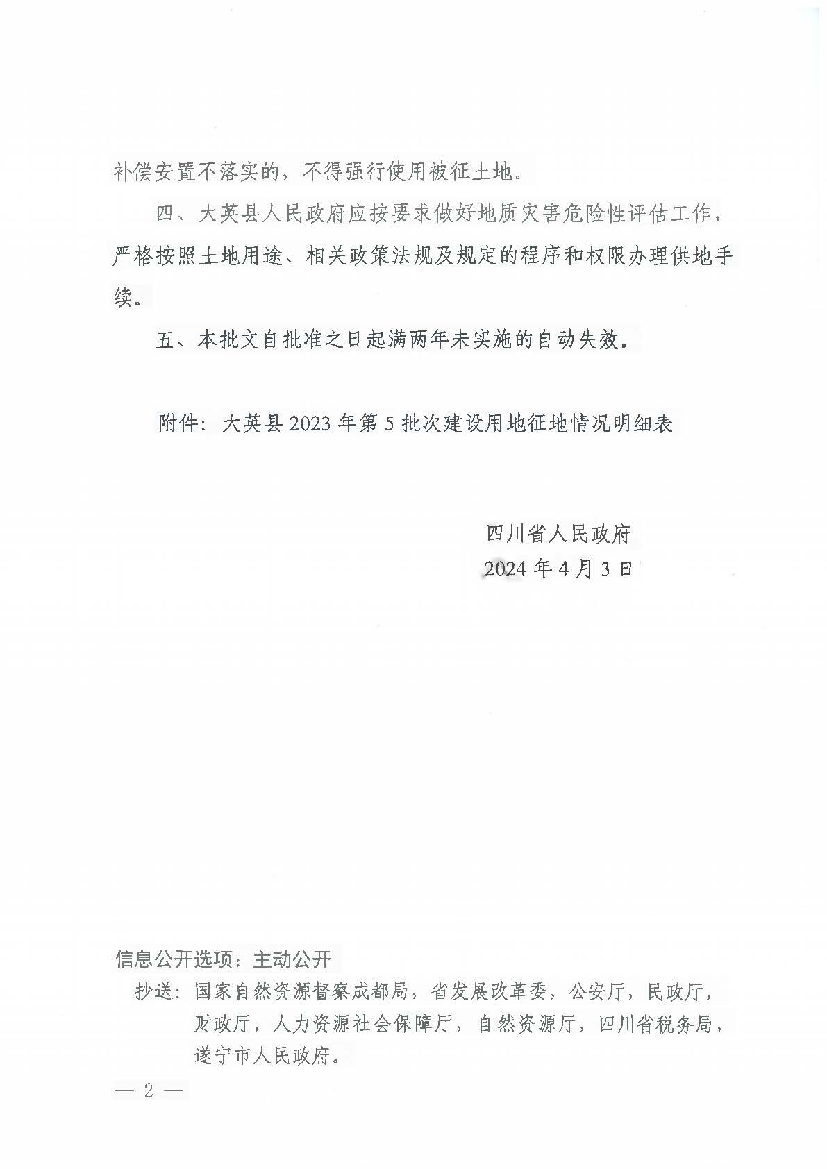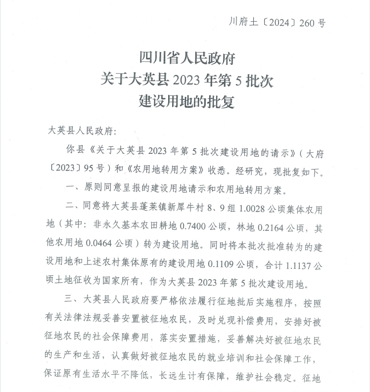 四川省人民政府关于大英县2023年第5批次建设用地的批复(川府土〔2024〕260号)