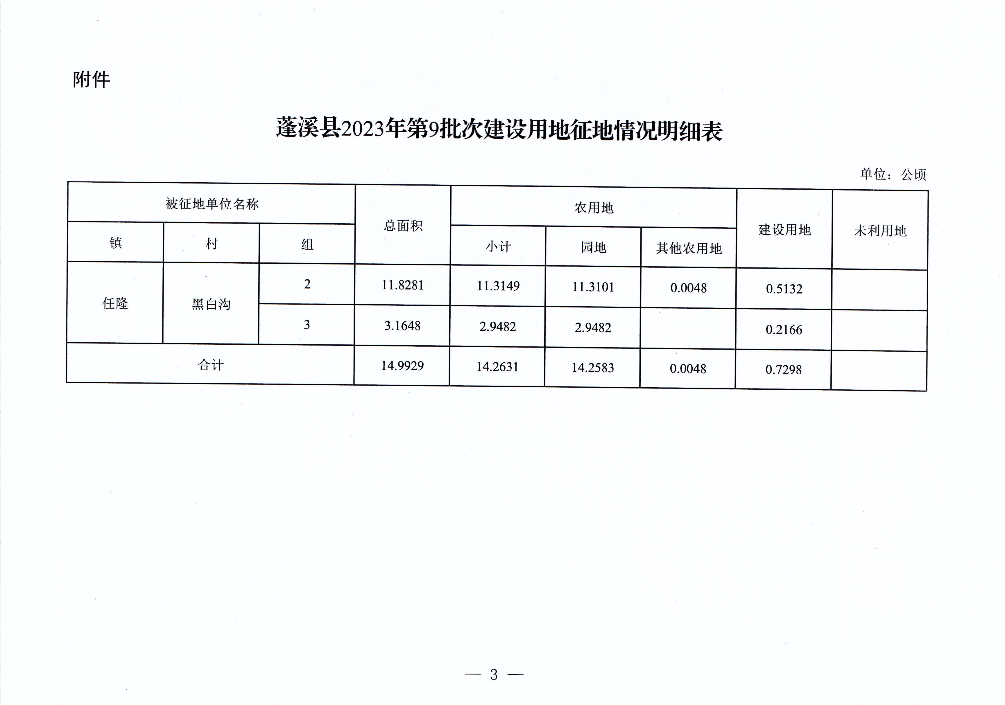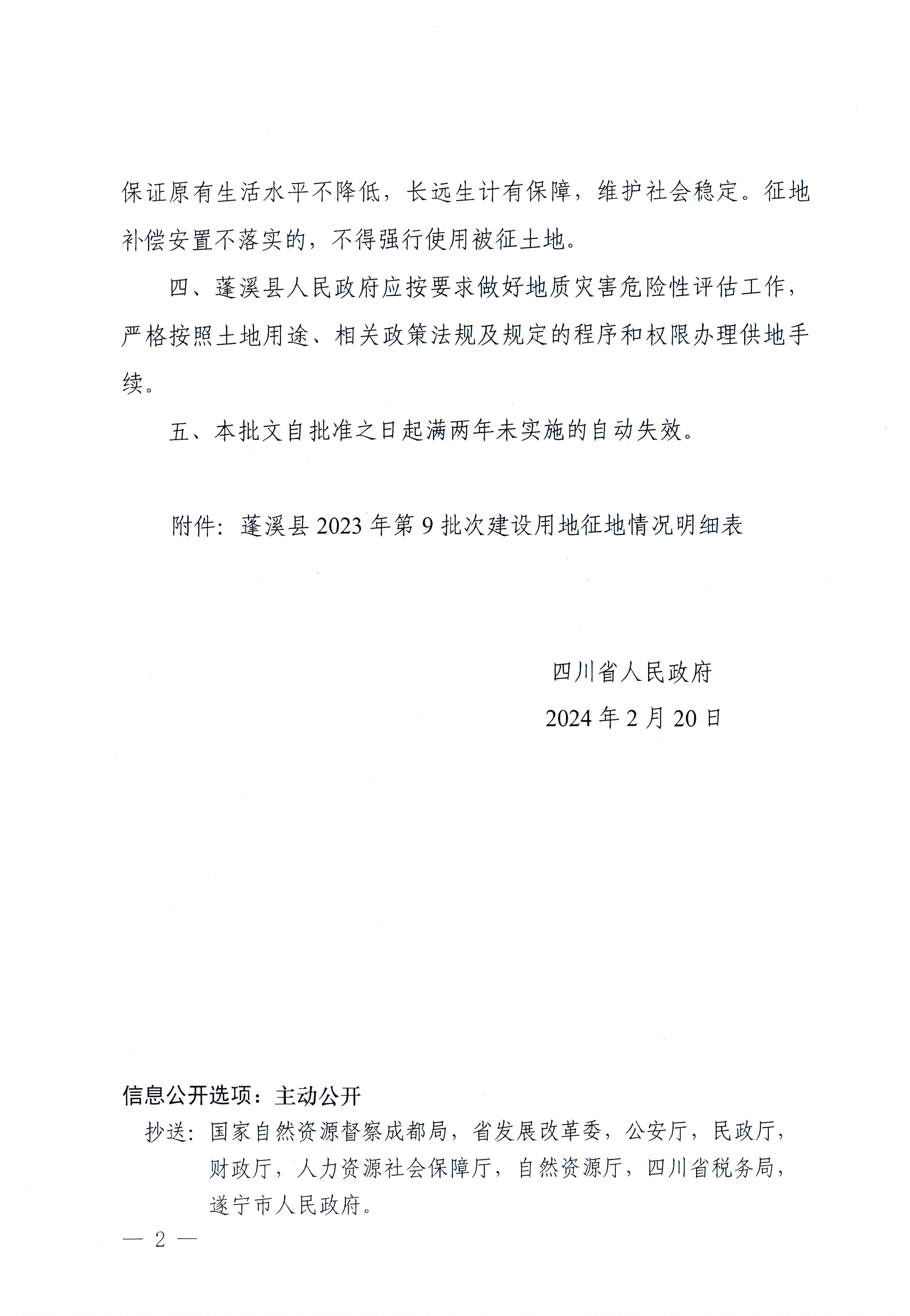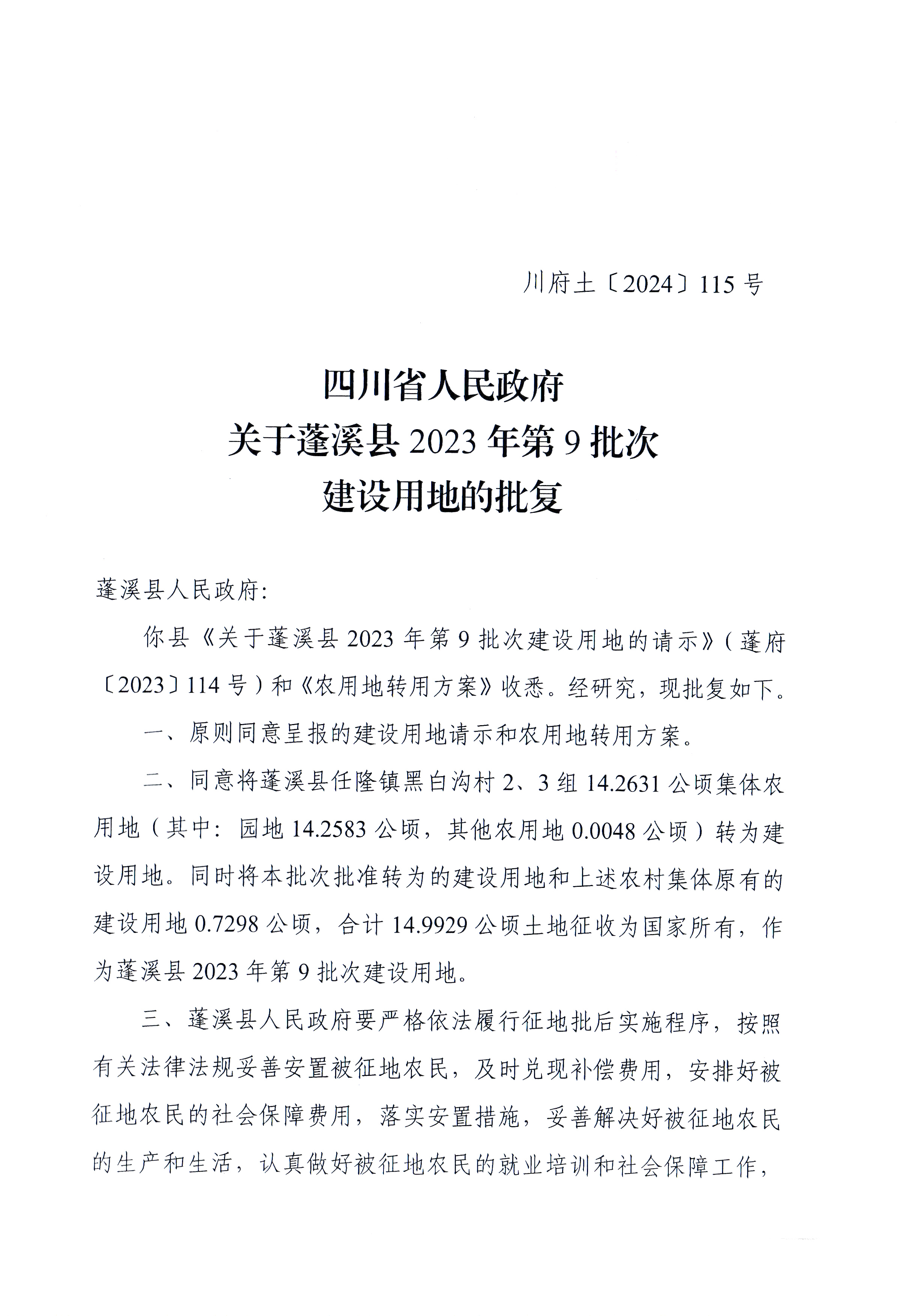 四川省人民政府关于蓬溪县2023年第9批次建设用地的批复(川府土〔2024〕115号)