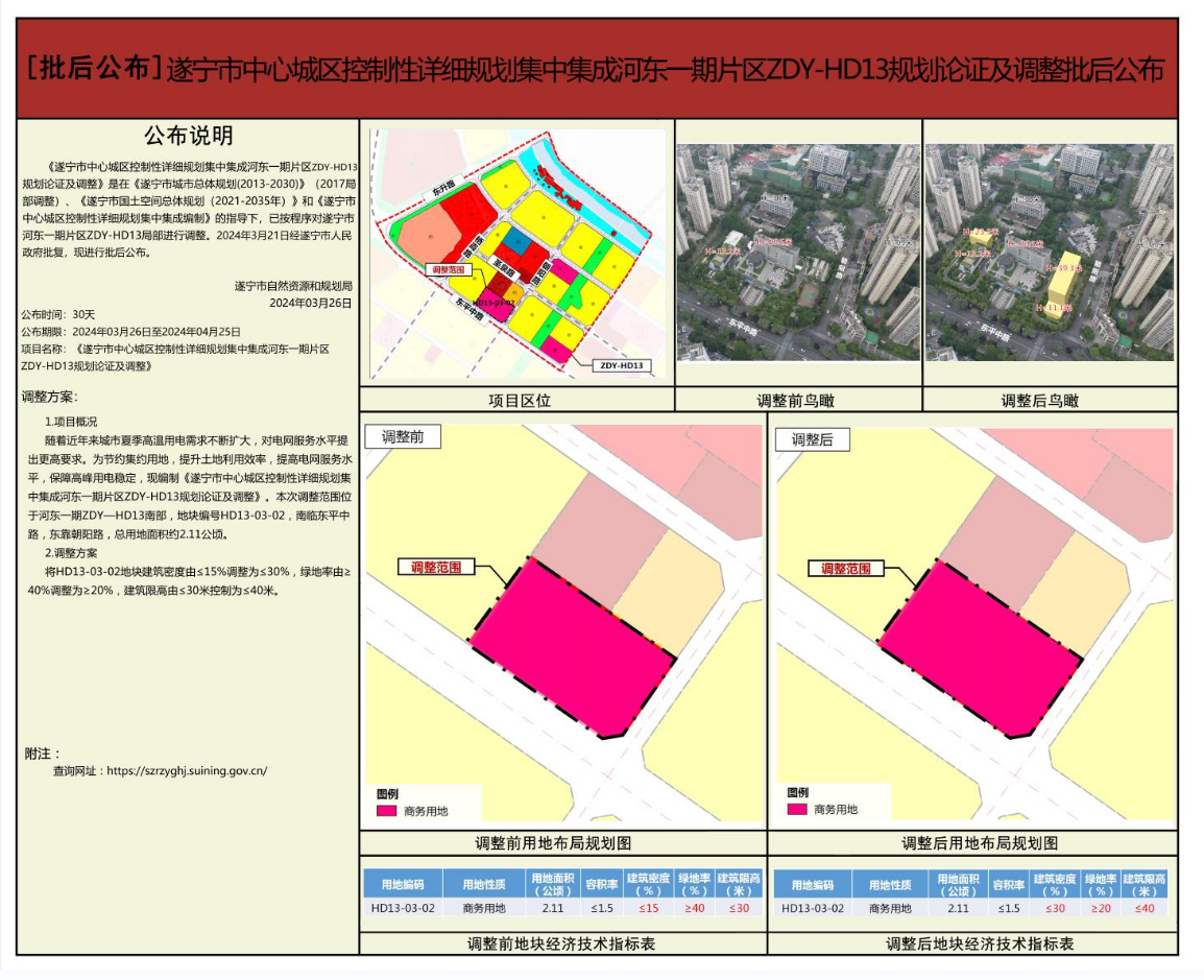 [批后公布]遂宁市中心城区控制性详细规划集中集成河东一期片区ZDY-HD13规划论证及调整批后公布