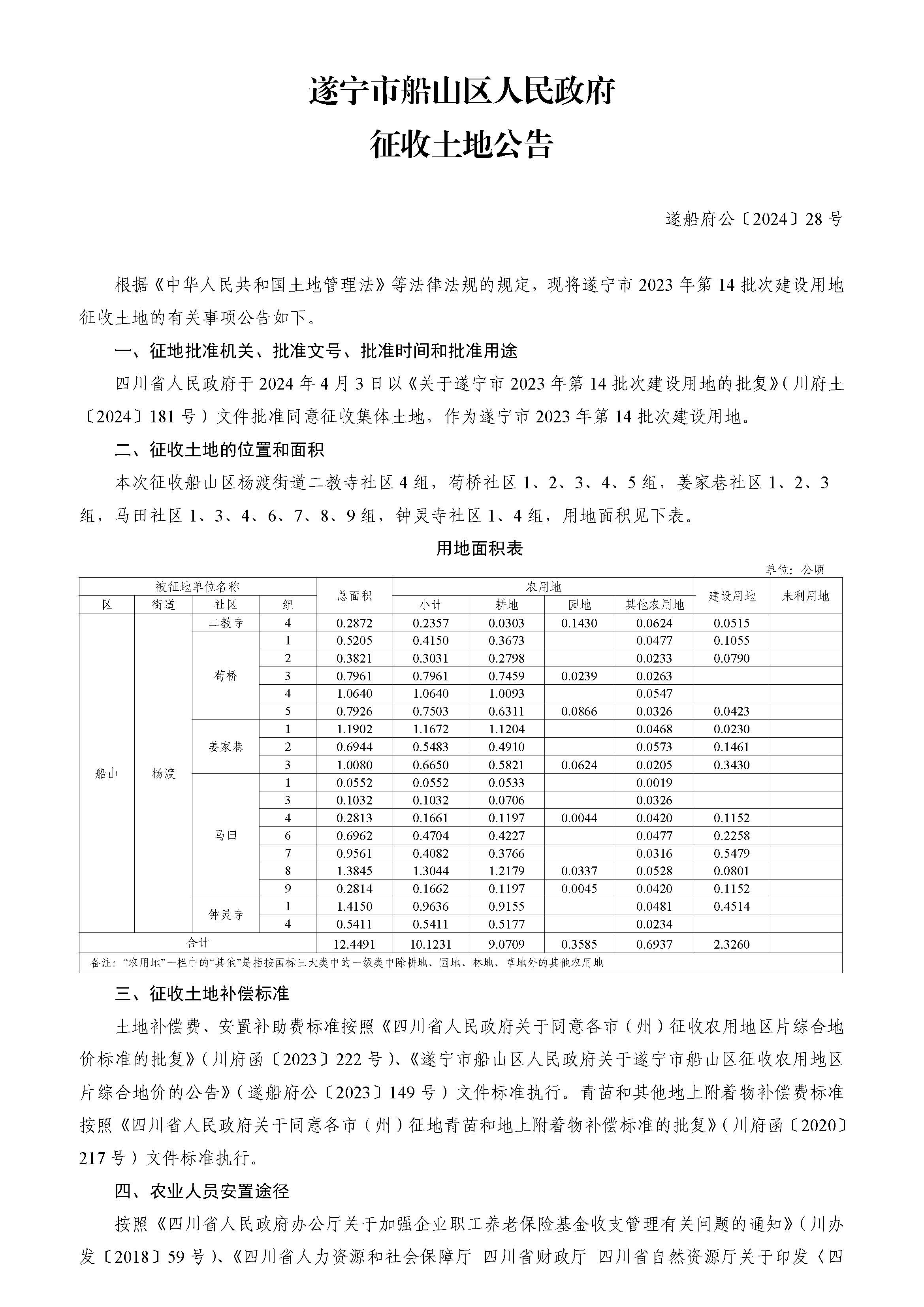 遂宁市船山区人民政府征收土地公告(遂船府公〔2024〕28号)