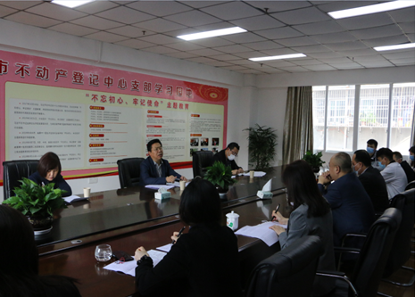 4月14日上午,遂宁市自然资源和规划局党委副书记裴军到市不动产登记中心督导调研中心2020年重点工作开展情况、历史遗留问题办证推进情况以及不动产登记领域违纪违法问题专项整治行动落实情况等工作。