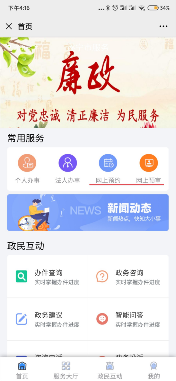 “互联网+不动产登记”开通网上预约预审微信公众号截图