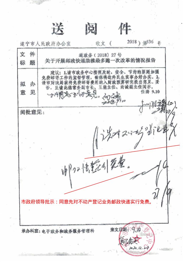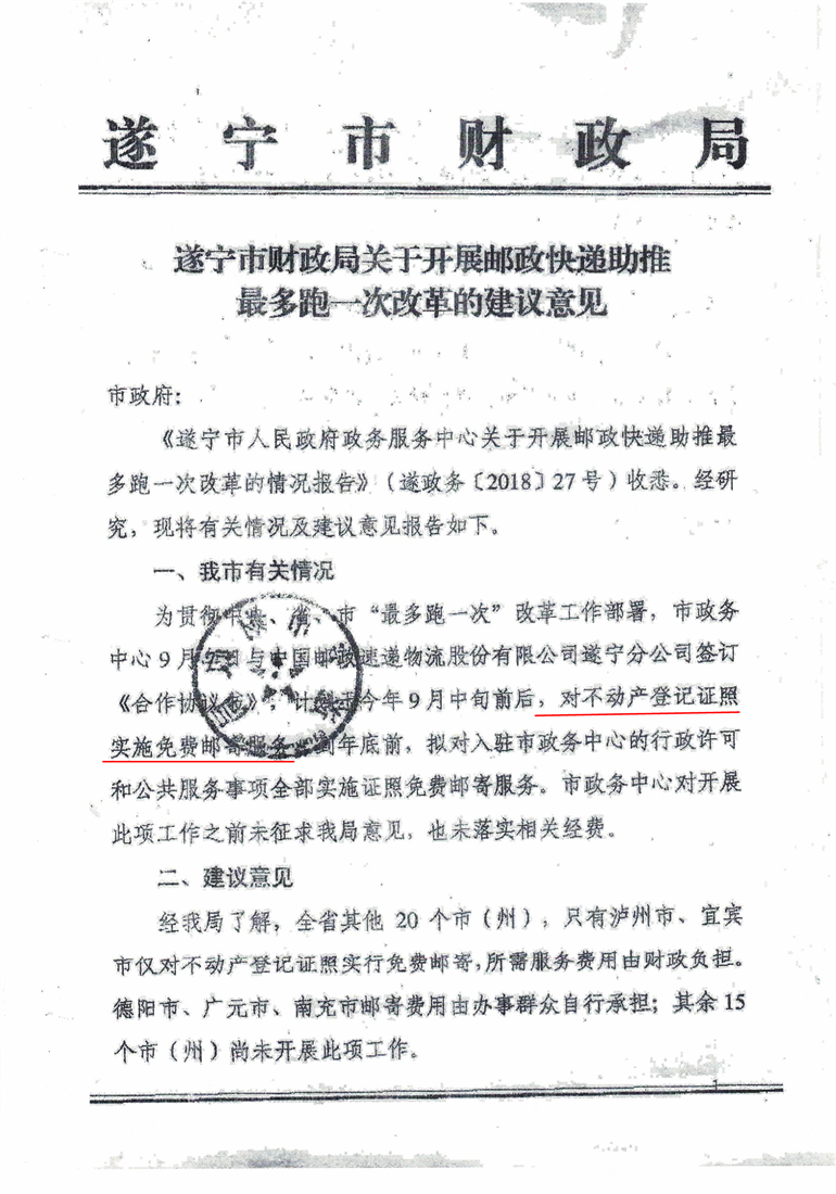 关于开展邮政快递助推最多跑一次改革的建议意见