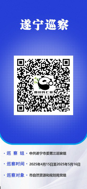 据悉,市委第三巡察组将对市自然资源和规划局党组开展为期1个月左右的常规巡察(4月15日—5月16日)。巡察期间设专门值班电话18011172016,电子邮箱SNSWXCZ3@163.com,还在市自然资源和规划局大门口、市环岛商务中心2号楼进门处等地分别设置巡察意见箱,欢迎广大干部群众如实向巡察组反映情况、提出意见建议,也欢迎到驻地与巡察组面谈。同步启用“四川码上巡”二维码,干部群众可以通过微信“扫一扫”二维码提交信访反映。