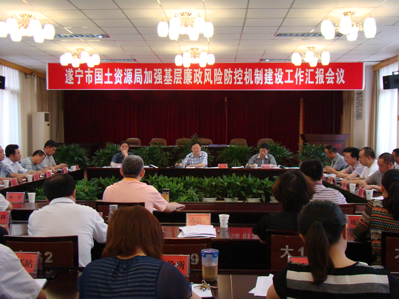 5月31日,检查组到遂宁市国土资源局召开加强基层廉政风险防控机制建设工作座谈会,并查阅了全市工作资料。局党委书记、局长叶长春向检查组汇报了全市系统基层廉政风防控机制建设和落实情况。在家的局党委成员,各县(区)局局长及2个乡镇国土资源所所长,局机关各科室、直属单位负责人、直属分局局长,局机关“两整治一改革”办公室全体工作人员共40余人参加了汇报会。各区县局长及10个镇的国土所长,市局部分科室负责人参加了座谈会。