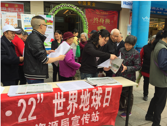 2017年4月22日是第48个世界地球日,为提高公众对地球认知度,增强全社会珍爱地球、保护环境意识。蓬溪县国土资源局积极组织开展“节约集约利用资源 倡导绿色简约生活”地球日主题宣传活动。于4月21日,在赤城镇百货大楼前设立宣传站,组织县局干部职工现场发放宣传册,向群众讲解绿色环保、低碳节能小知识及国土资源法律法规,积极宣扬“创新、协调、绿色、开放、共享”社会发展理念,引导广大居民树立爱护地球、保护家园意识,逐步养成绿色简约的生活习惯。