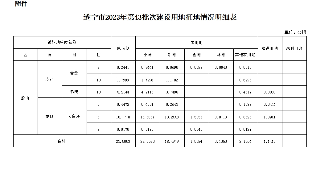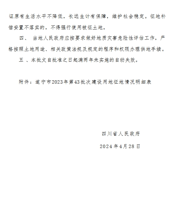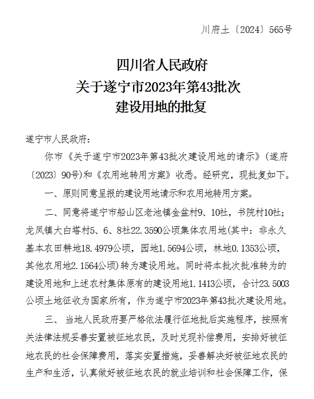 四川省人民政府关于遂宁市2023年第43批次建设用地的批复