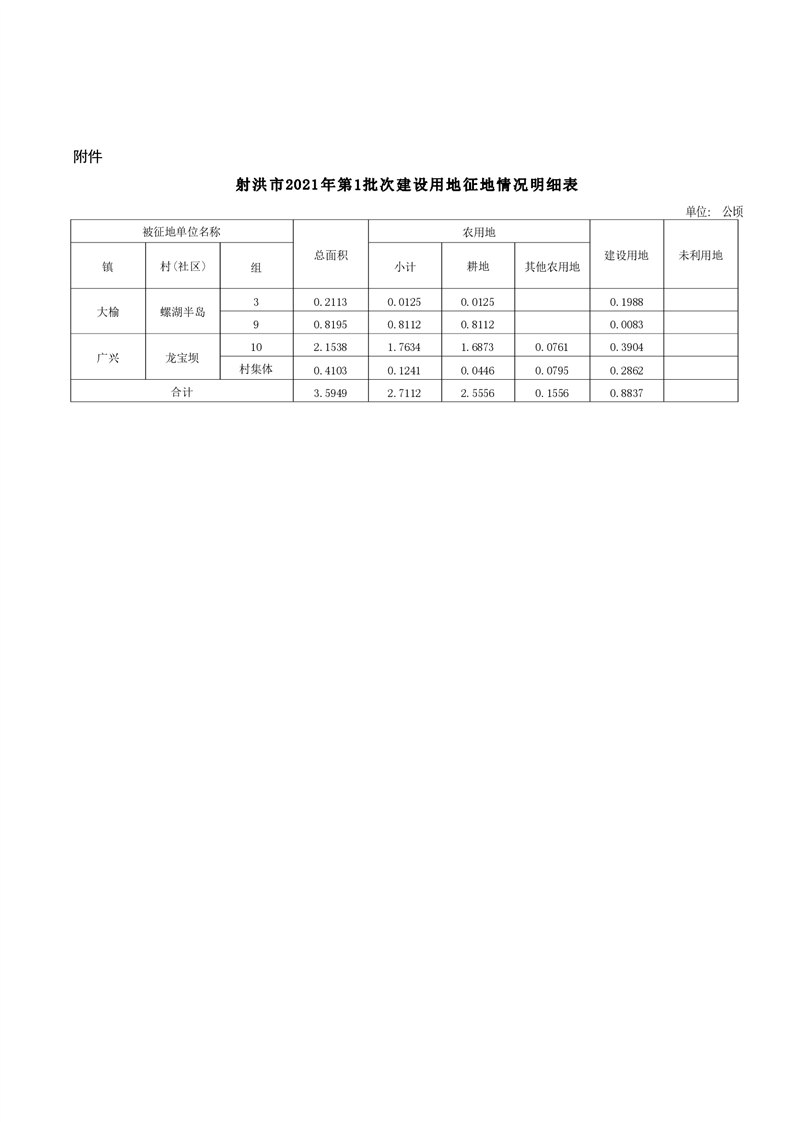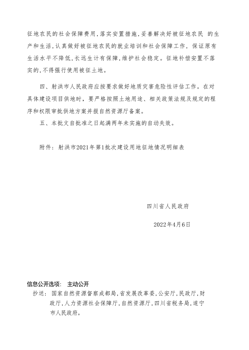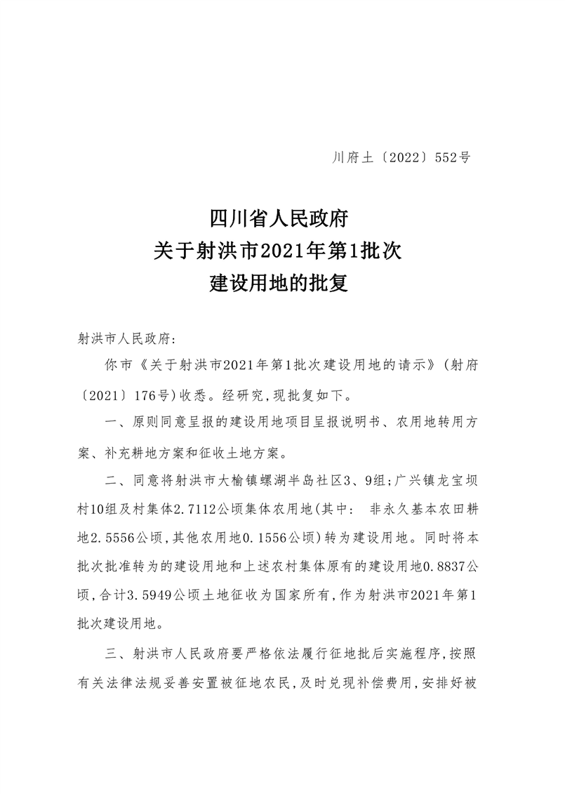 四川省人民政府关于射洪市2021年第1批次建设用地的批复(川府土〔2022〕552号)