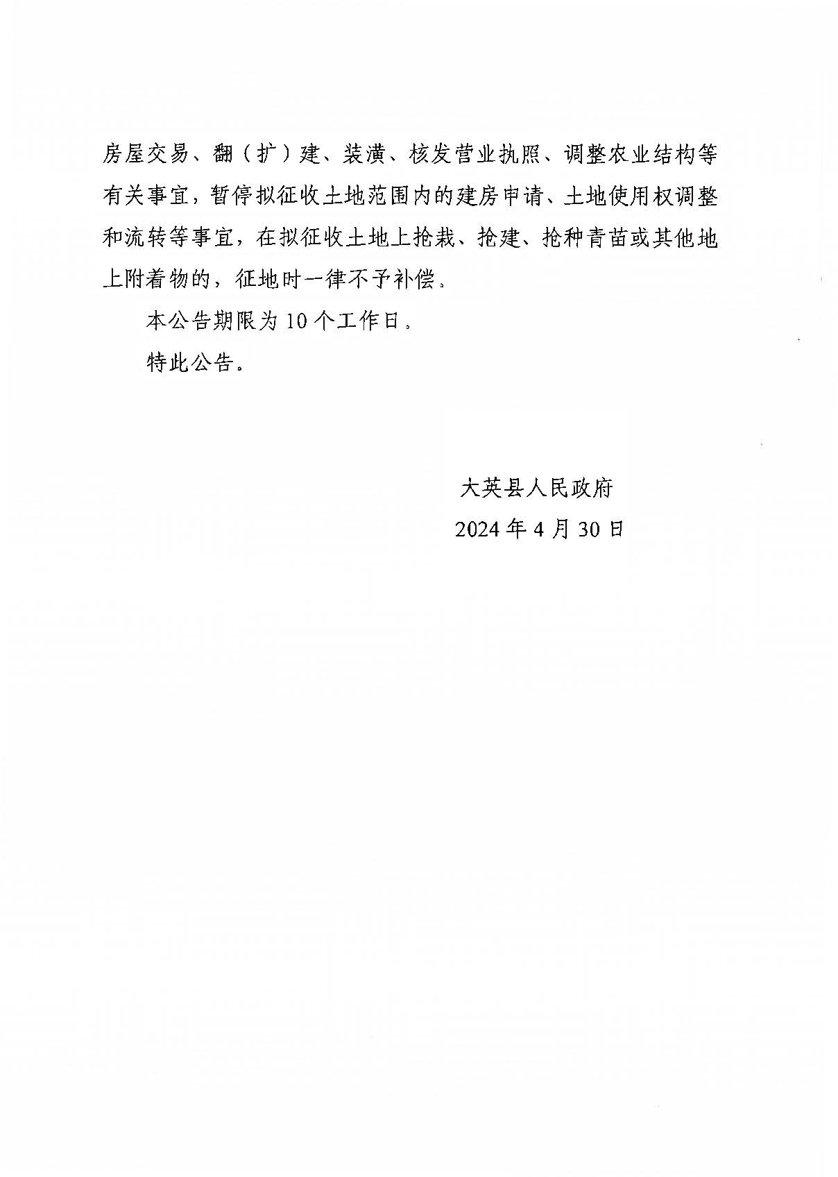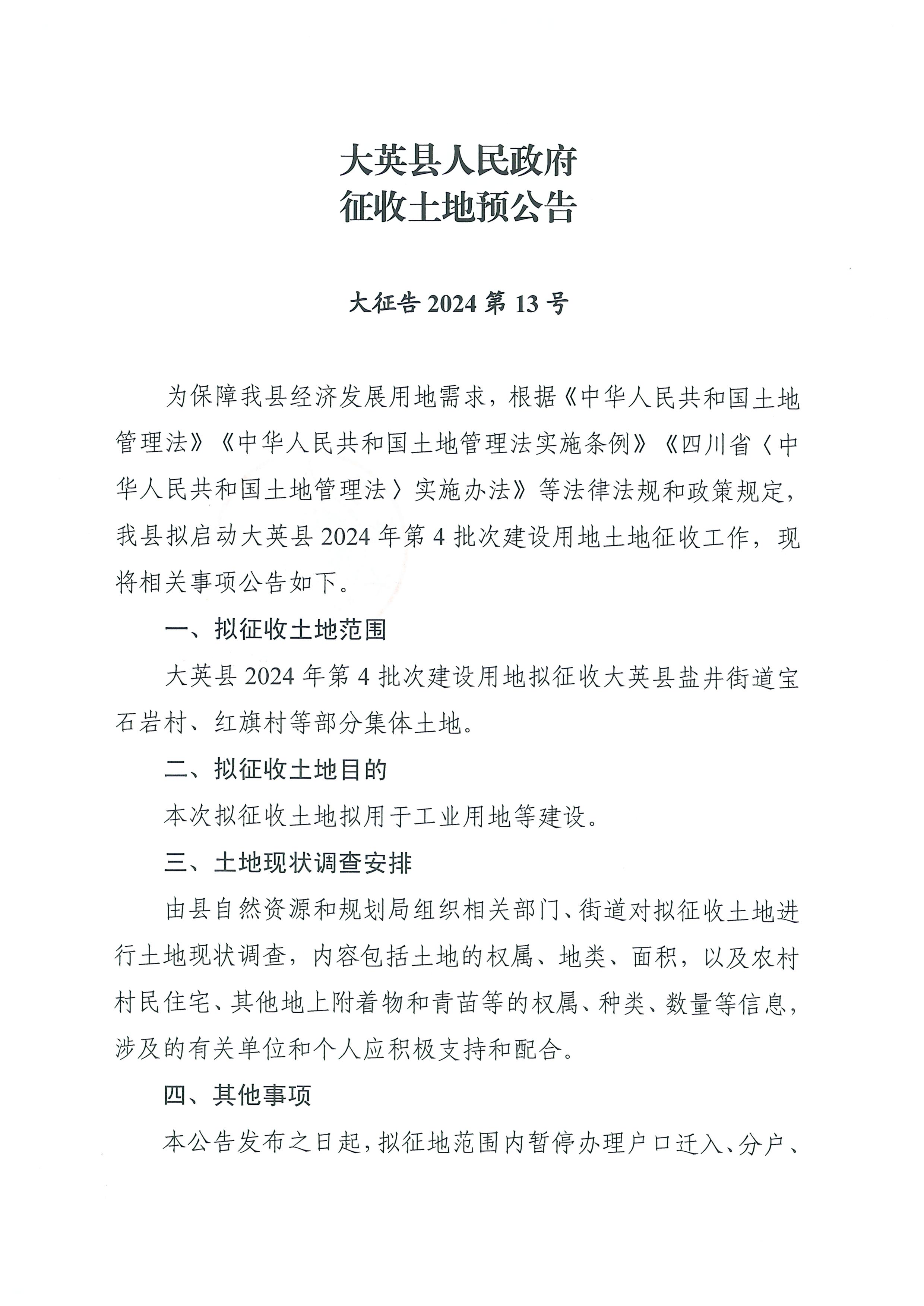 大英县人民政府征收土地预公告(大征告2024第13号)