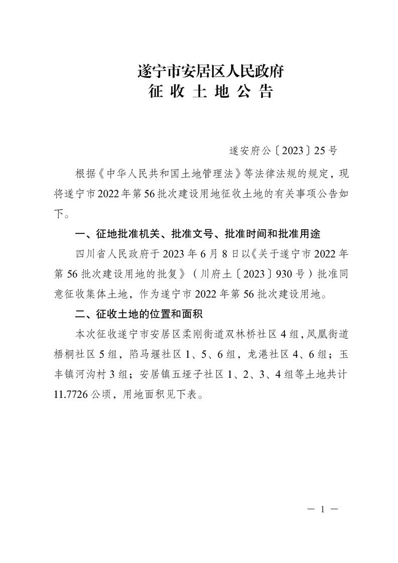遂宁市安居区人民政府征收土地公告(遂安府公〔2023〕25号)