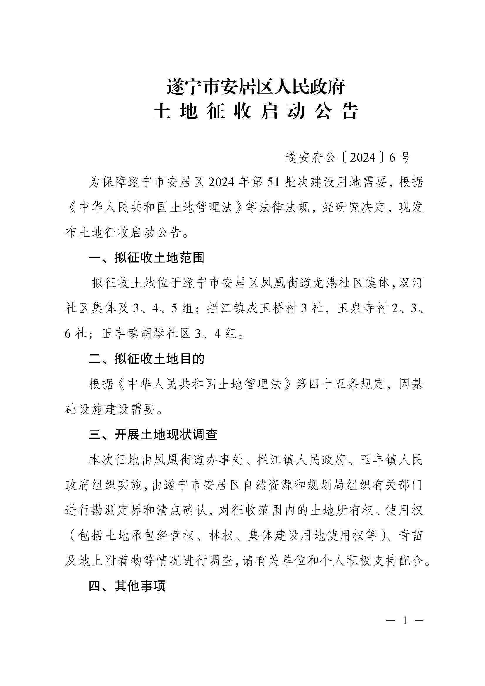 遂宁市安居区人民政府土地征收启动公告 (遂安府公〔2024〕6号)