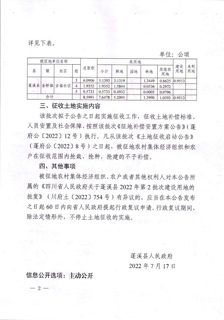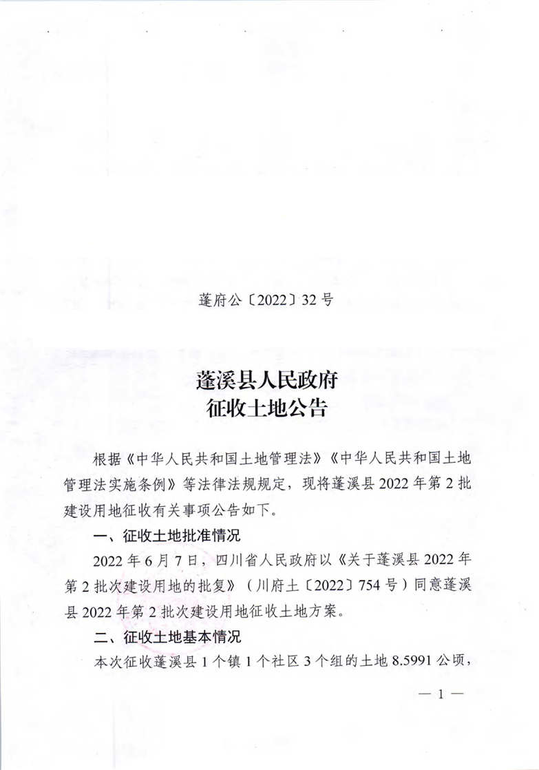 蓬溪县人民政府征收土地公告(蓬府公〔2022〕32号)2022年第2批建设用地