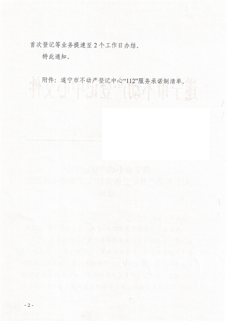 关于不动产登记业务实行“112”服务承诺制的通知
