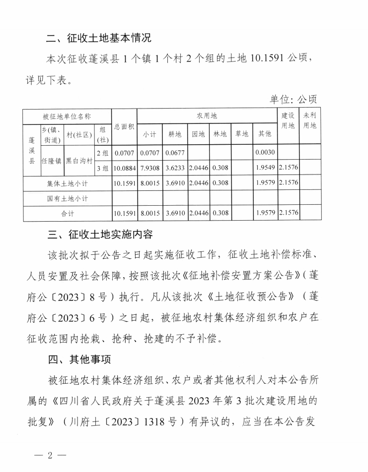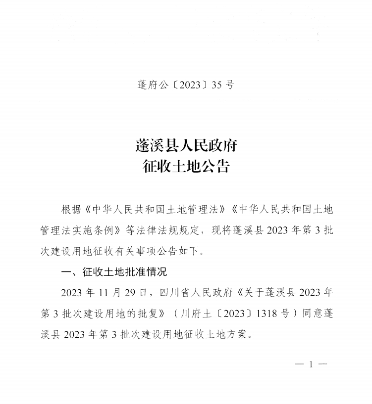 蓬溪县人民政府征收土地公告(蓬府公〔2023〕35号)