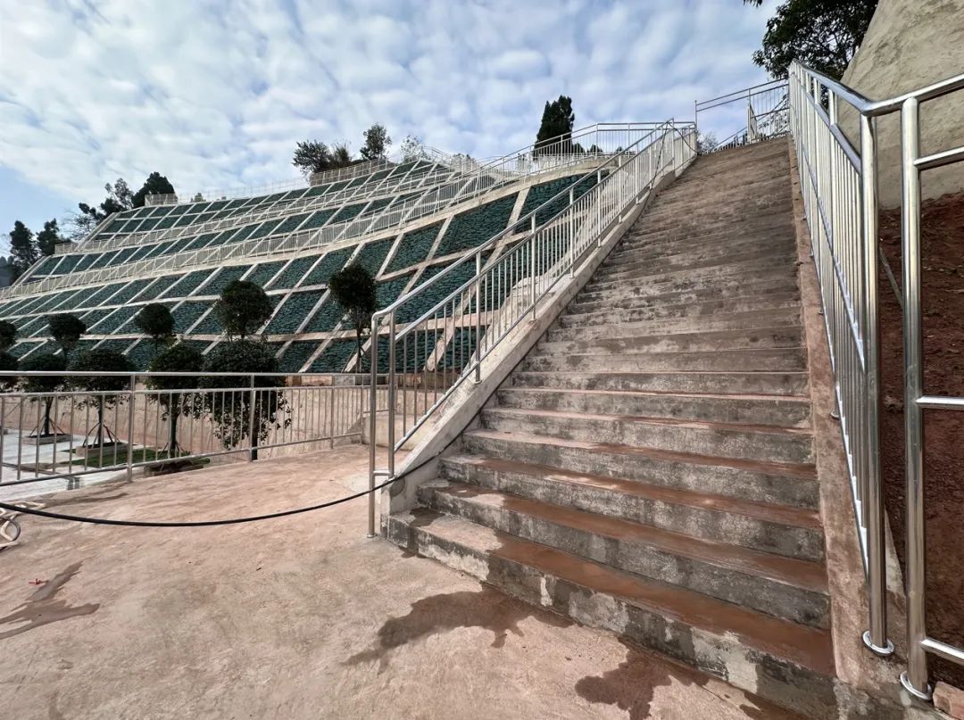 “该治理工程不仅有效进行了边坡治理,还兼顾了生态复绿。为满足环保和景观要求,工程对高陡斜坡实施绿化美化,在格构框架内采用生态袋装填培土,种植迎春花和常青藤,在坡脚及护脚墙顶修建砖砌生态防护种植槽,间隔种植桂花树。”射洪市自然资源和规划局地质环境监测站站长周强表示,通过此次地质灾害工程治理,大大降低了该点位地质灾害的发生概率和危害程度,有效保护了学校师生的生命财产安全。
