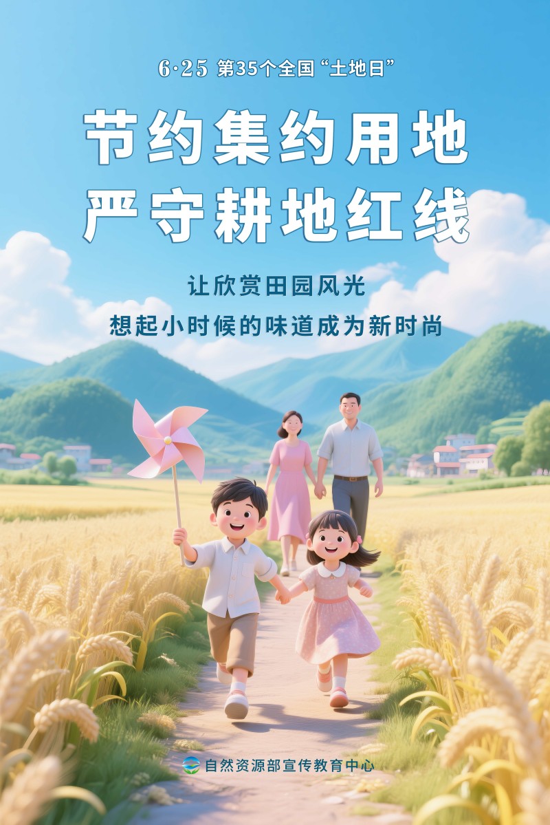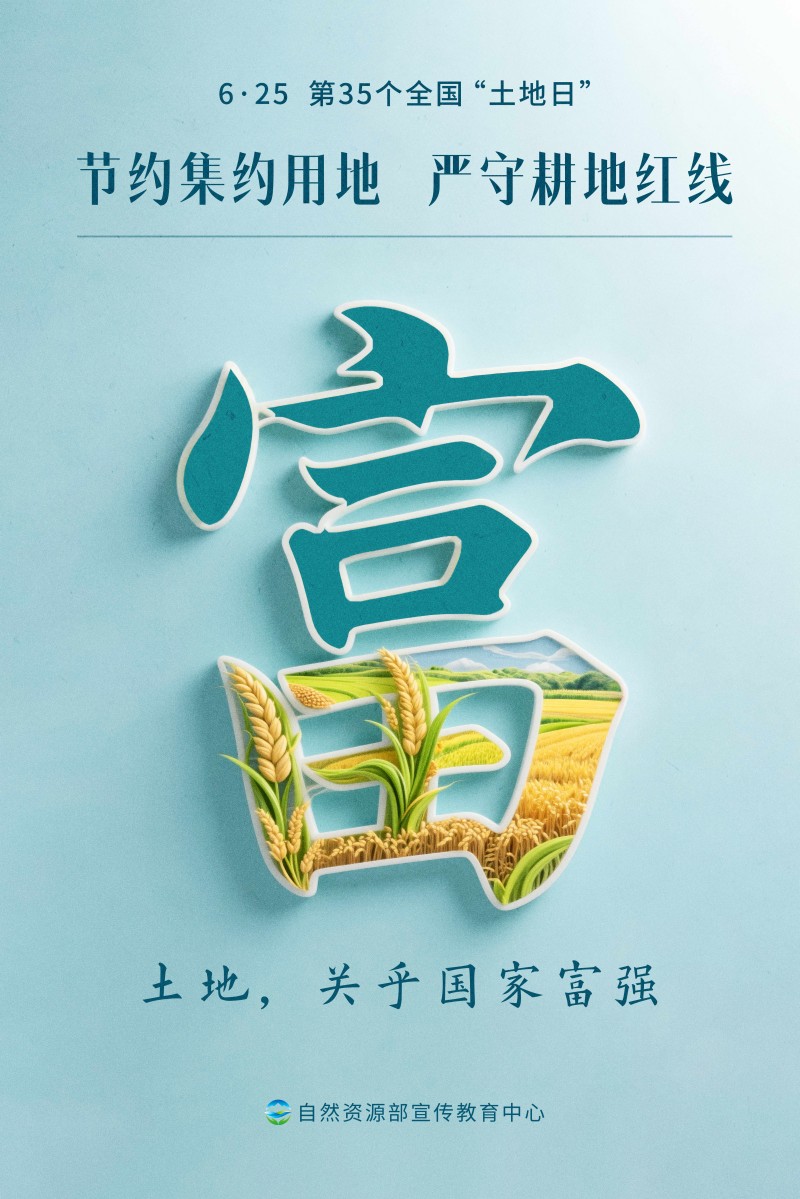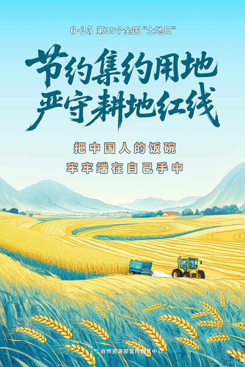 2025年6月25日是第35个全国“土地日”,宣传主题是“节约集约用地 严守耕地红线”。为方便大家开展“耕地保护进万村”等各类线上线下活动,自然资源部宣传教育中心策划制作了多套不同风格的宣传海报,欢迎各地下载使用。希望全社会树立保护耕地、节约用地的意识,像保护大熊猫一样保护耕地,让每一寸土地都成为高质量发展的沃土。